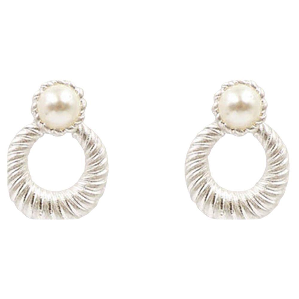 PEARL BEAD SWIRL METAL DANGLE EARRING