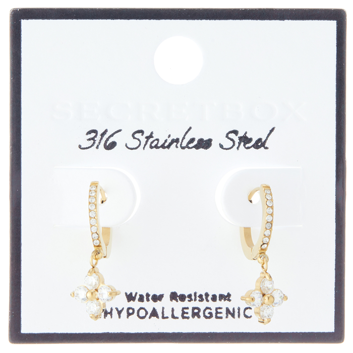 SECRET BOX CRYSTAL STAINLESS STEEL HUGGIE EARRING
