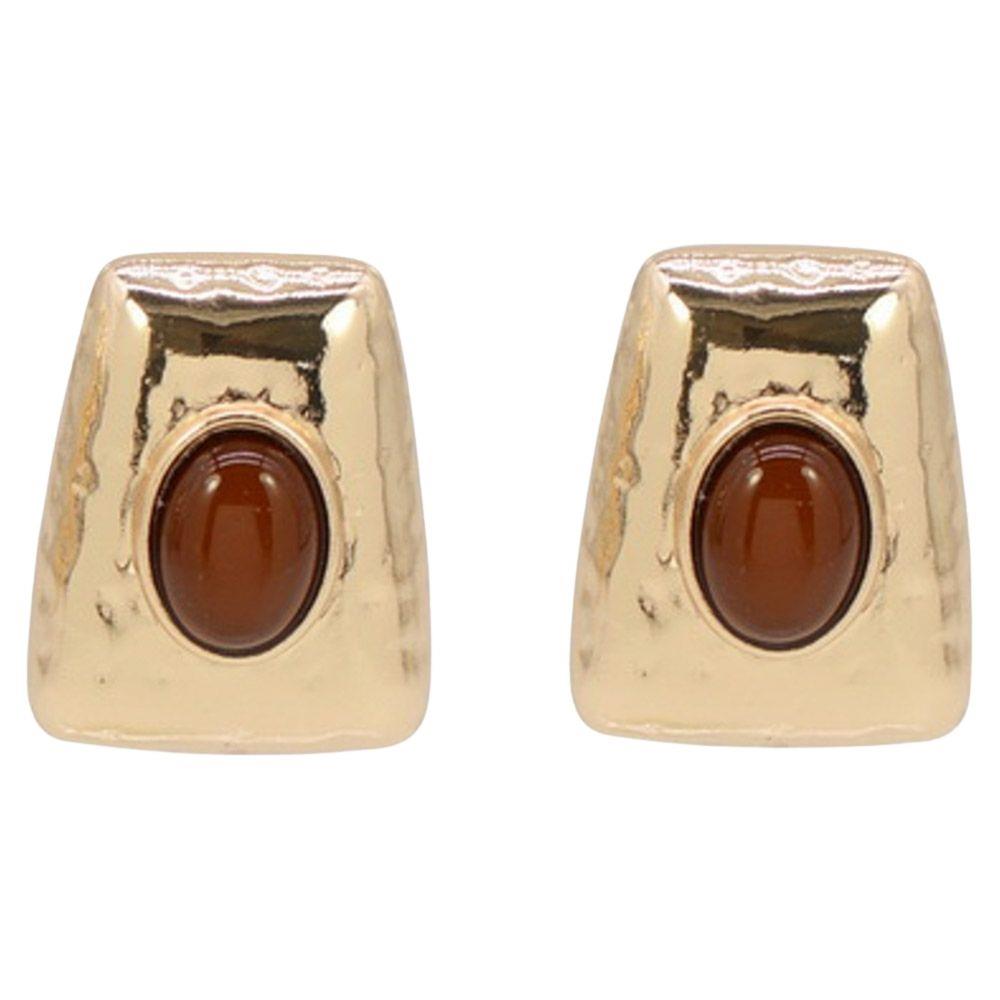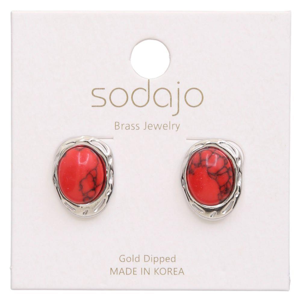SODAJO OVAL STONE METAL GOLD DIPPED EARRING