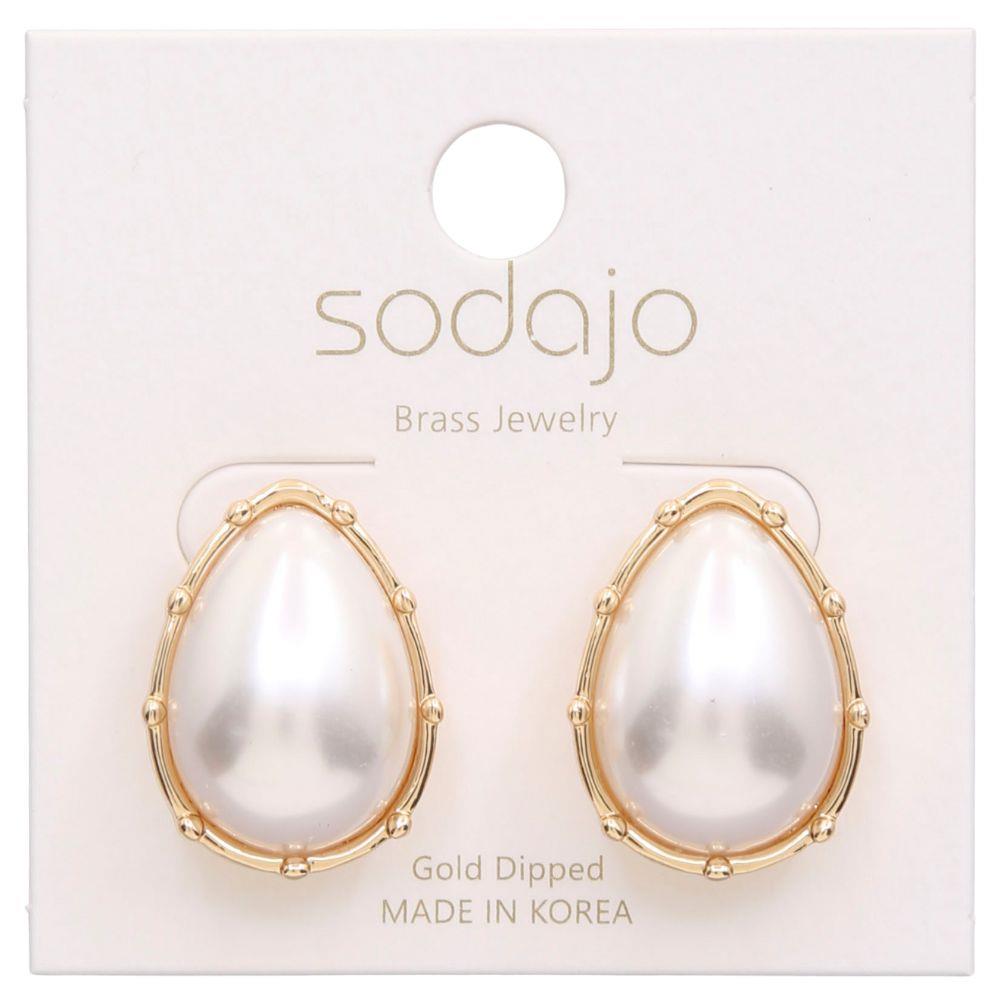 SODAJO TEARDROP PEARL BEAD GOLD DIPPED EARRING