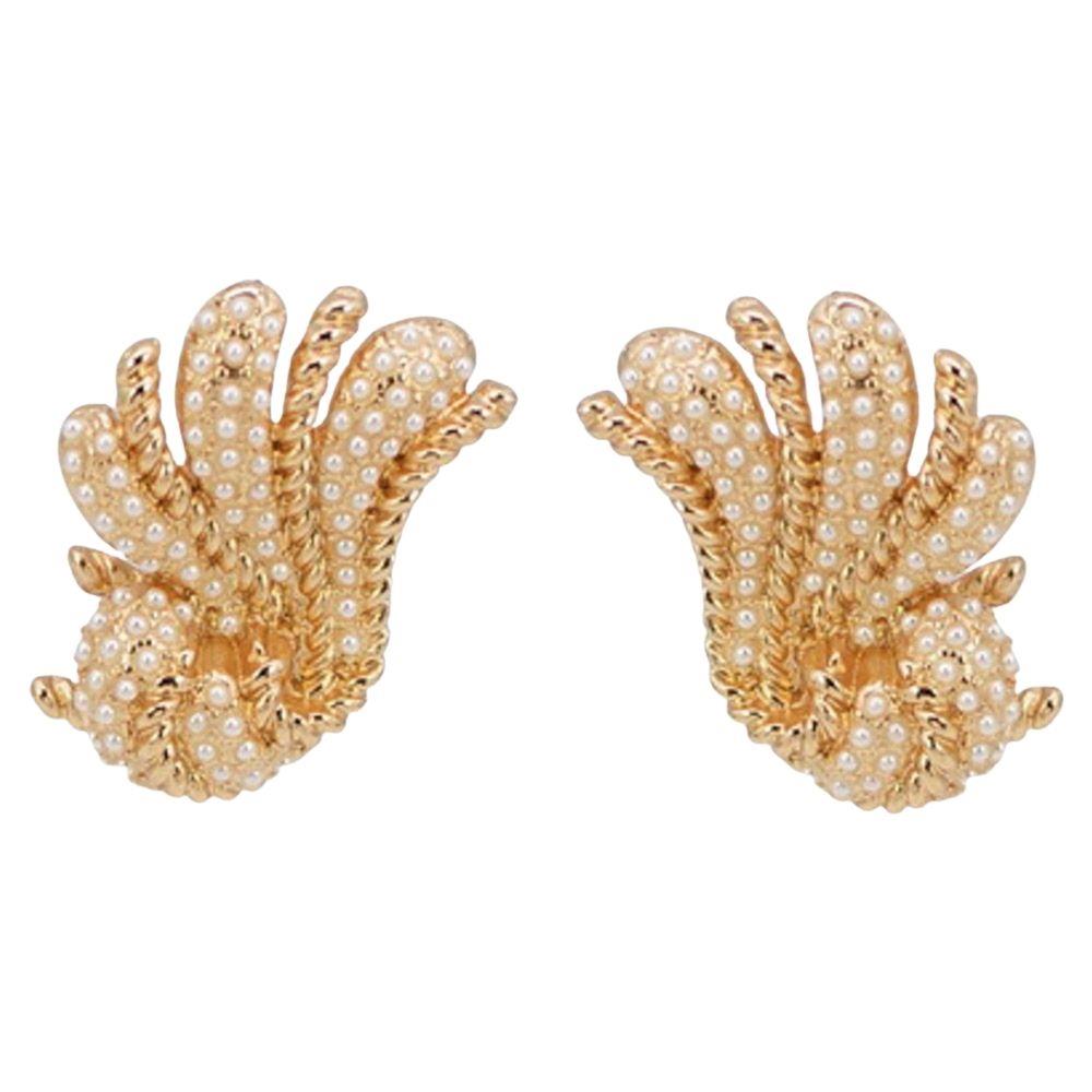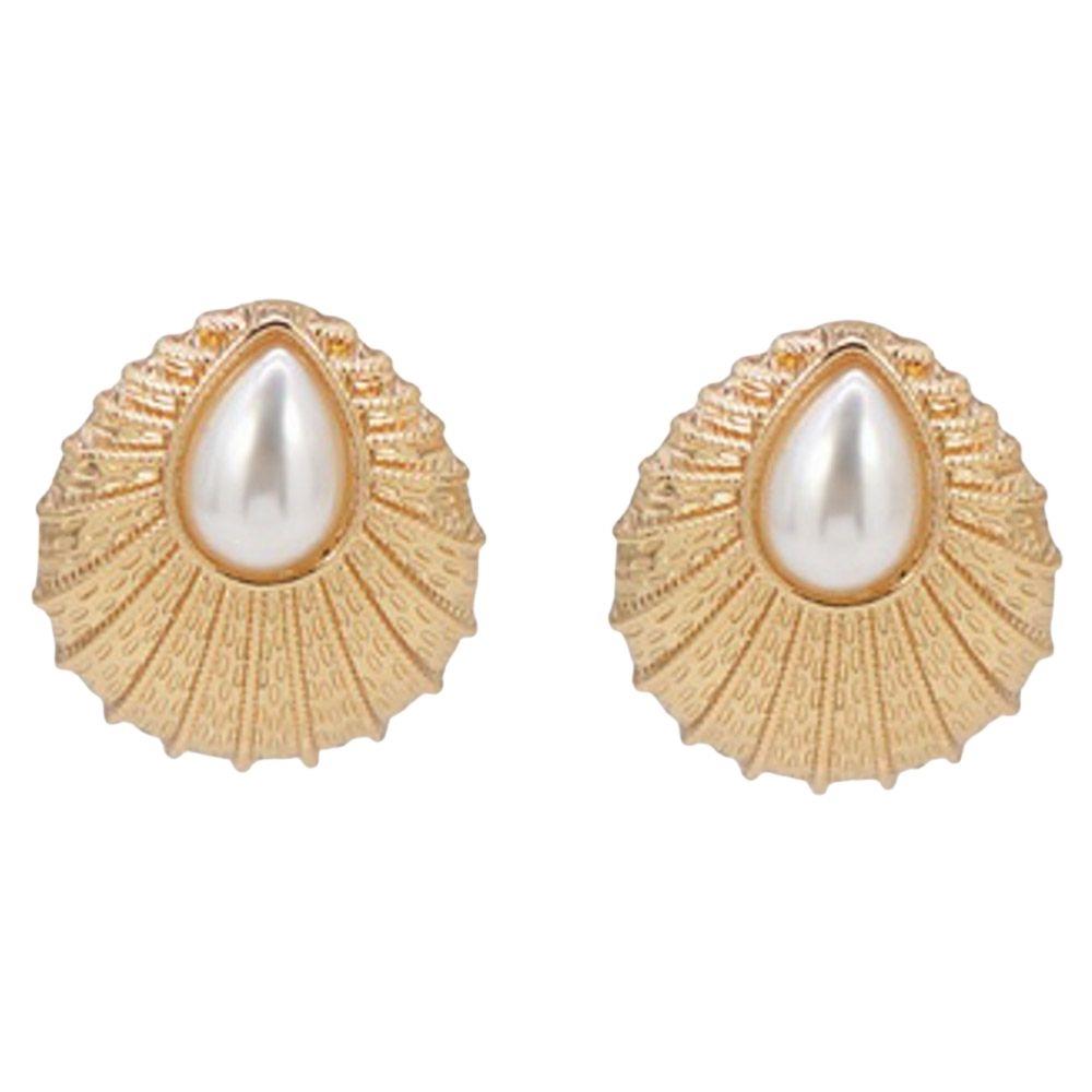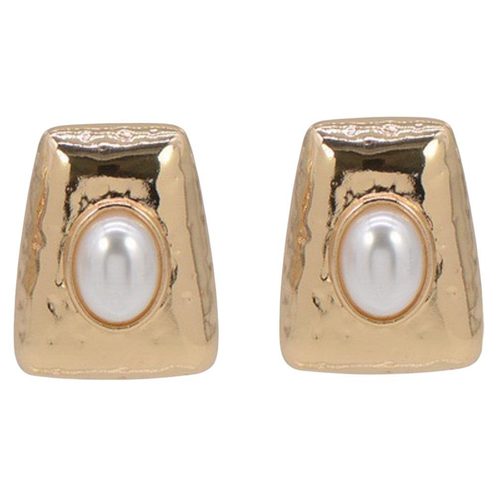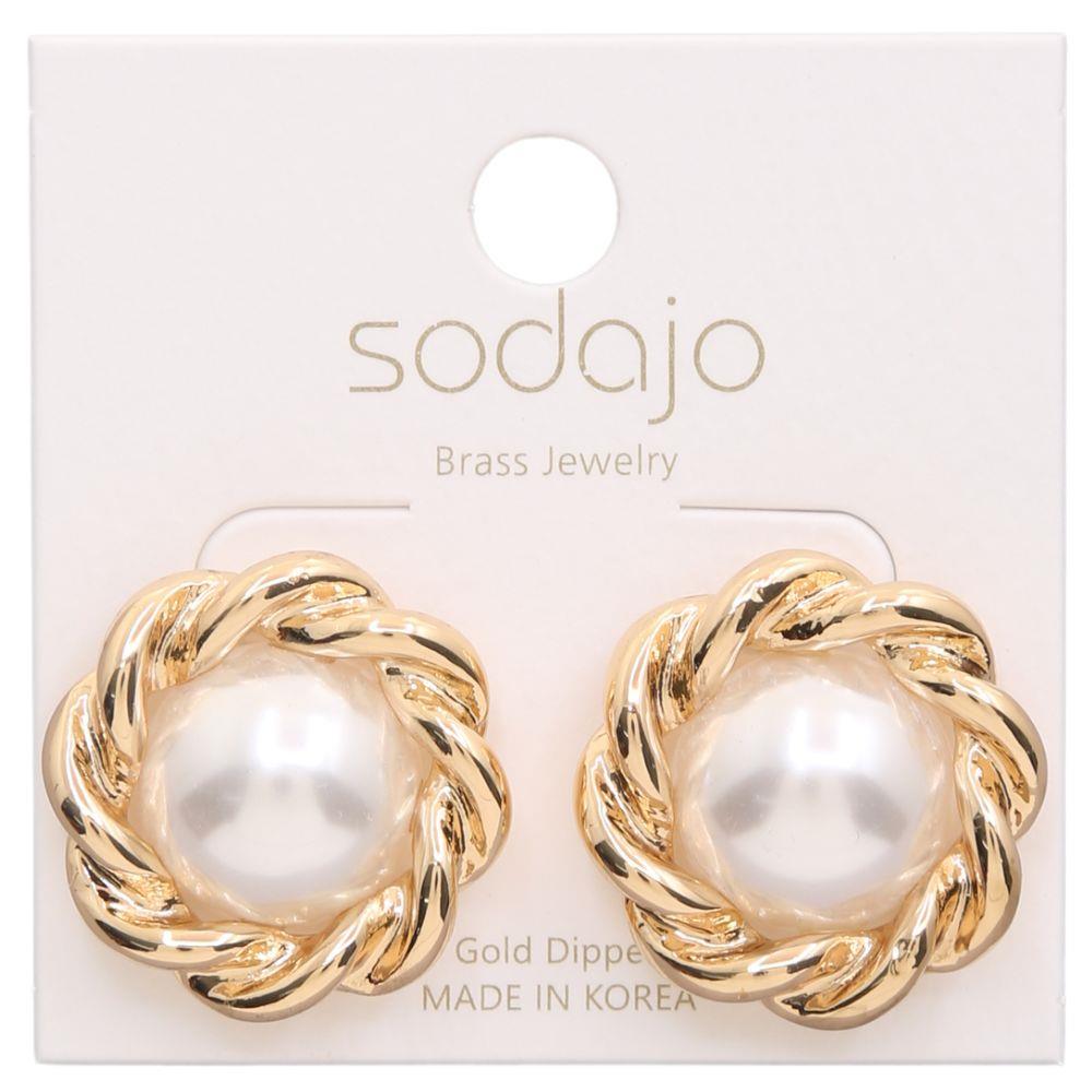 SODAJO ROUND PEARL BEAD TWISTED EDGE GOLD DIPPED EARRING