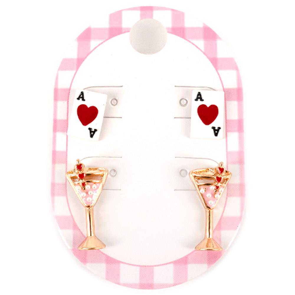 VALENTINES DAY CARD GLASS DANGLE EARRING  2 PAIR SET