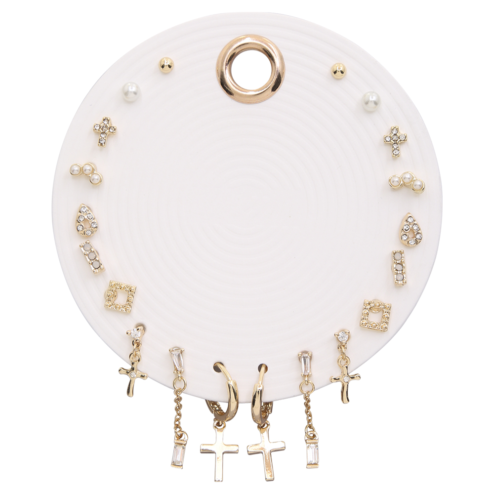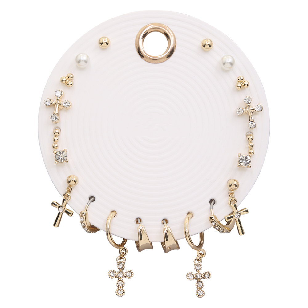 CROSS METAL RHINESTONE PEARL MIX ASSORTED EARRING SET