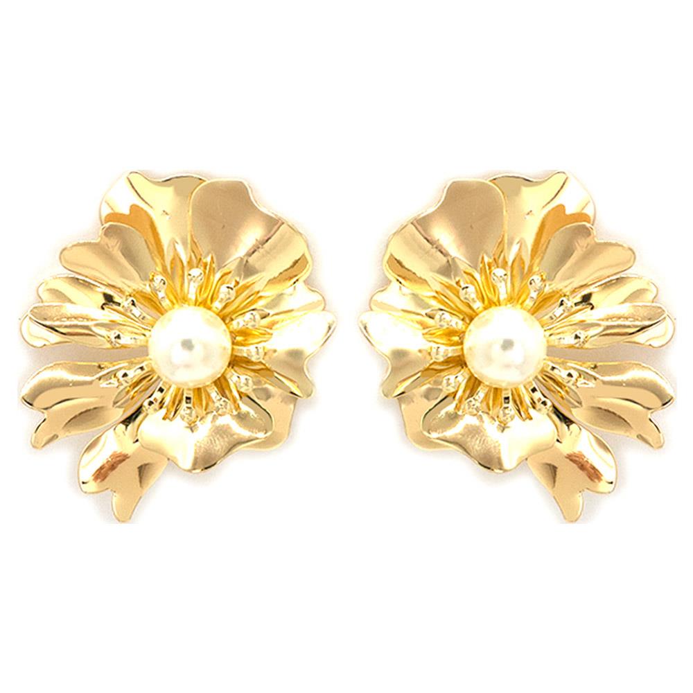 METAL PEARL FLORAL STUD EARRING