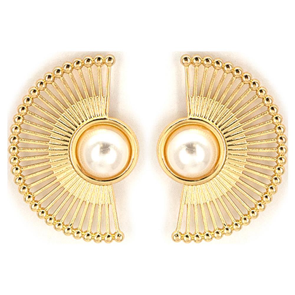 TEXTURED METAL FAN PEARL CENTER STUD EARRING