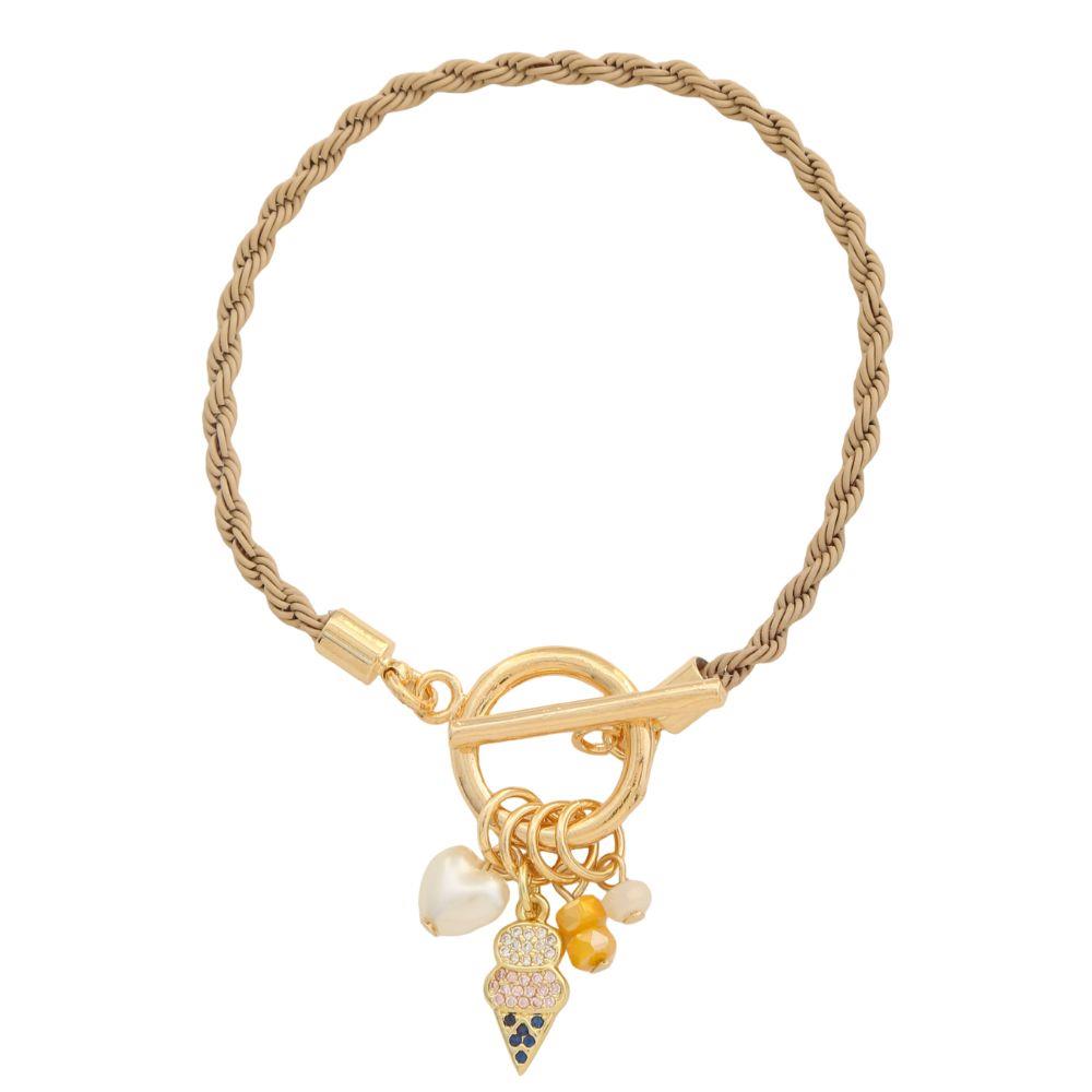 SODAJO ICE CREAM MULTI CHARM ROPE LINK TOGGLE CLASP GOLD DIPPED BRACELET