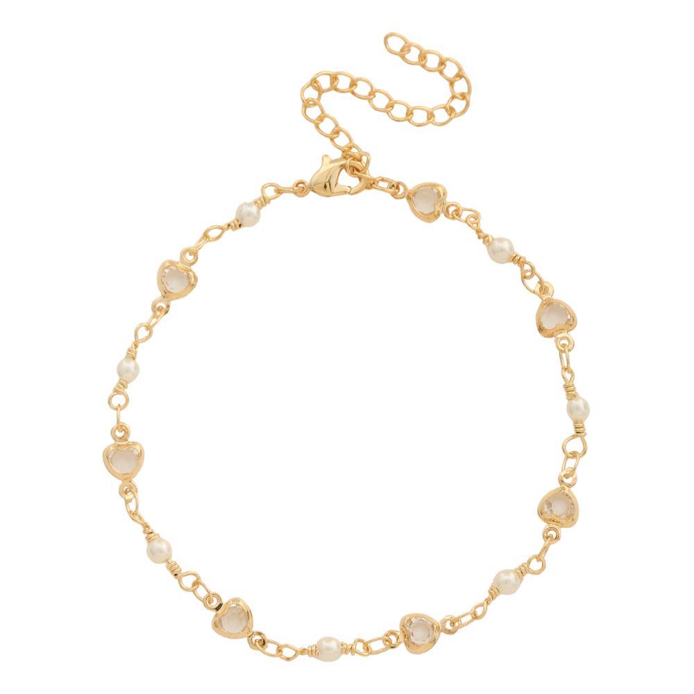 SODAJO HEART CRYSTAL PEARL BEAD GOLD DIPPED BRACELET