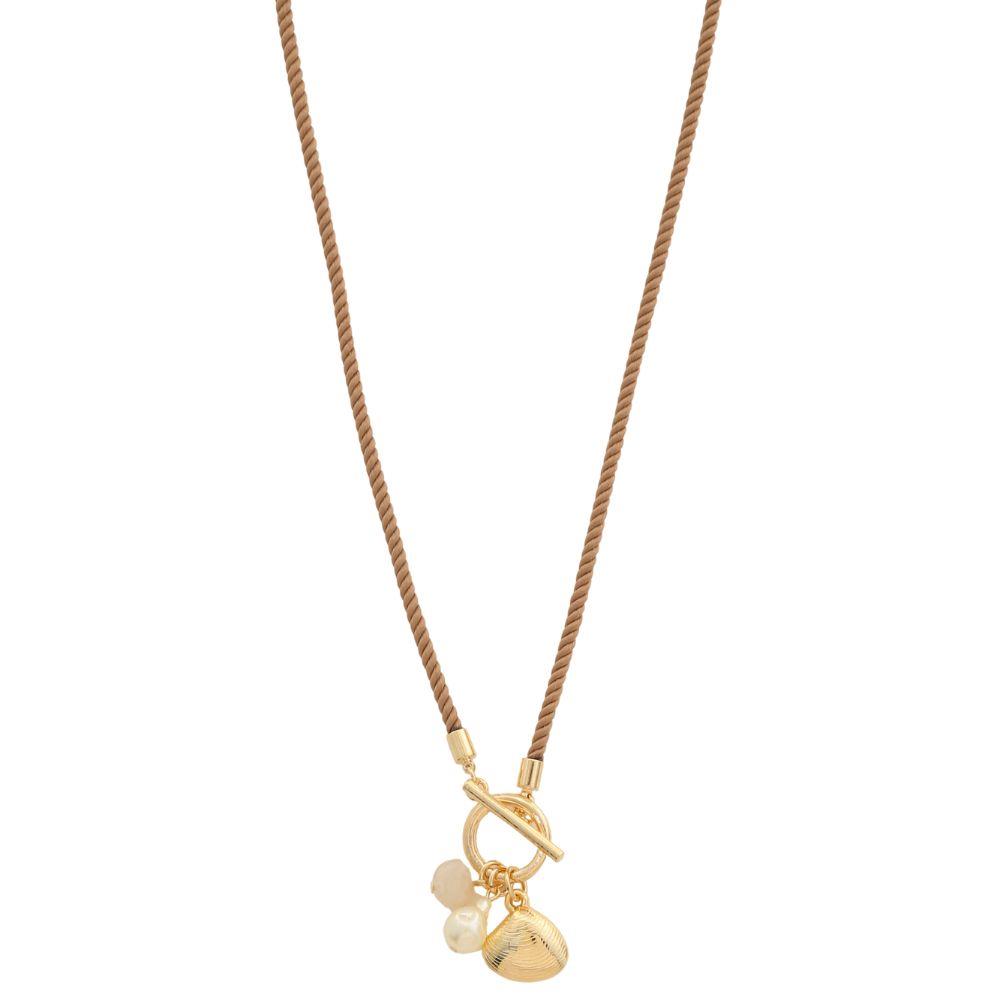 SODAJO SEASHELL PEARL BEAD CORD GOLD DIPPED NECKLACE