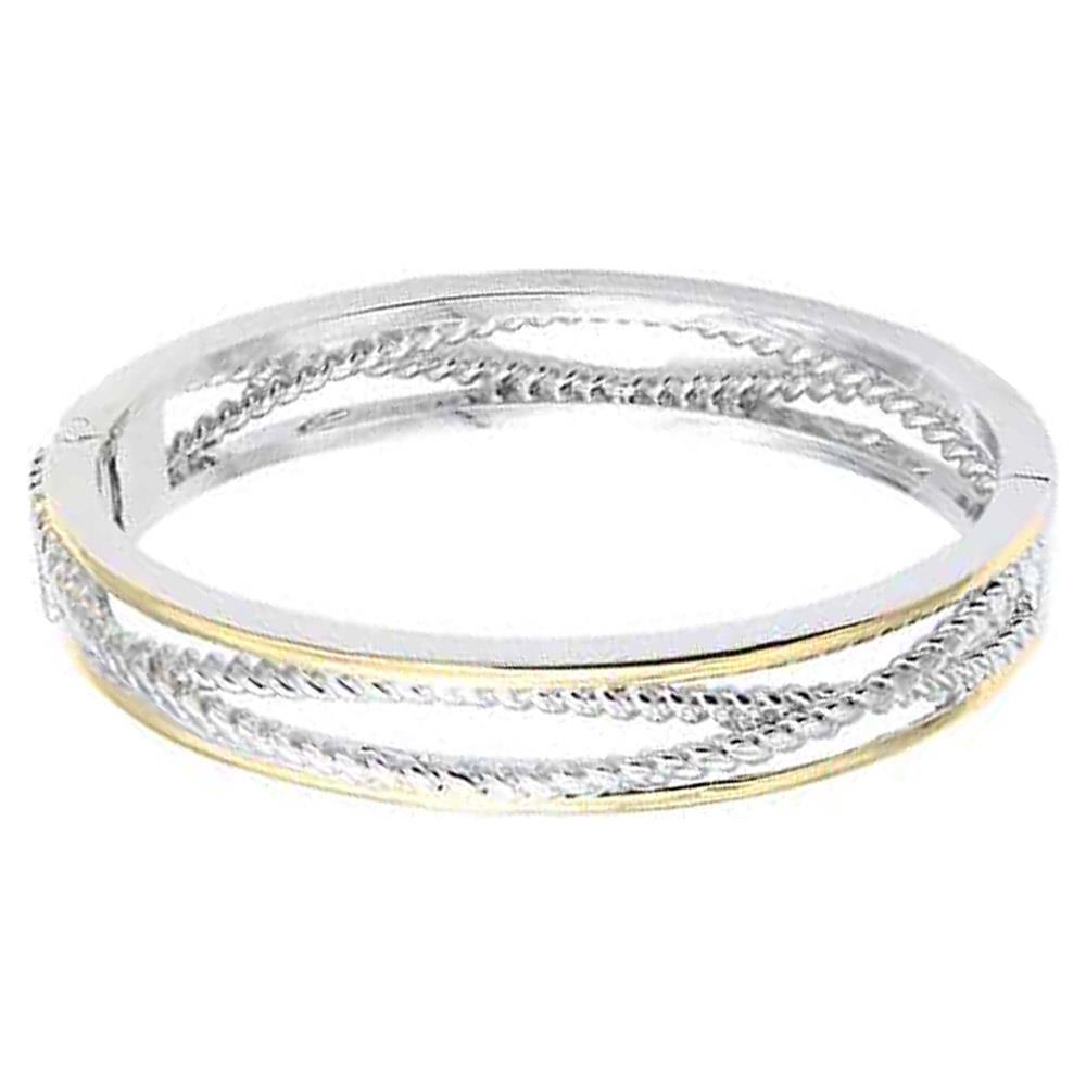 14K GOLD PLATED 2-TONES HINGED BANGLES BRACELET