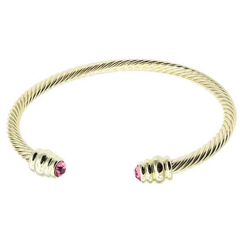 RHINESTONE ROUND GOLD PLATED STAINLESS STEEL HINGED BANGLE BRACELET