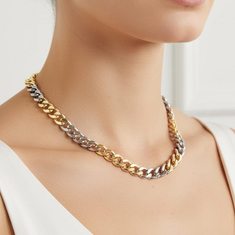 TWO TONE MIXED GOLD DIPPED CURB CHAIN NECKLACE