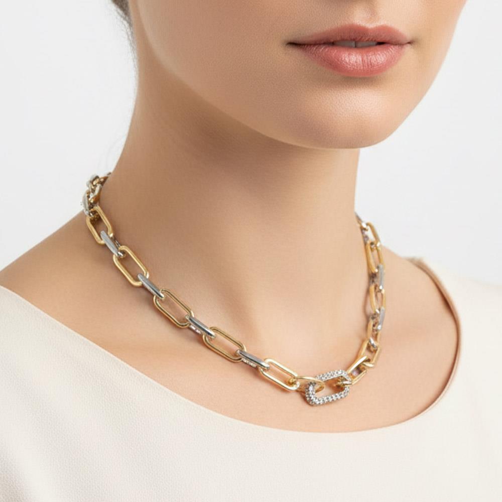TWO TONE RHINESTONE GOLD DIPPED OVAL LINK CHAIN NECKLACE