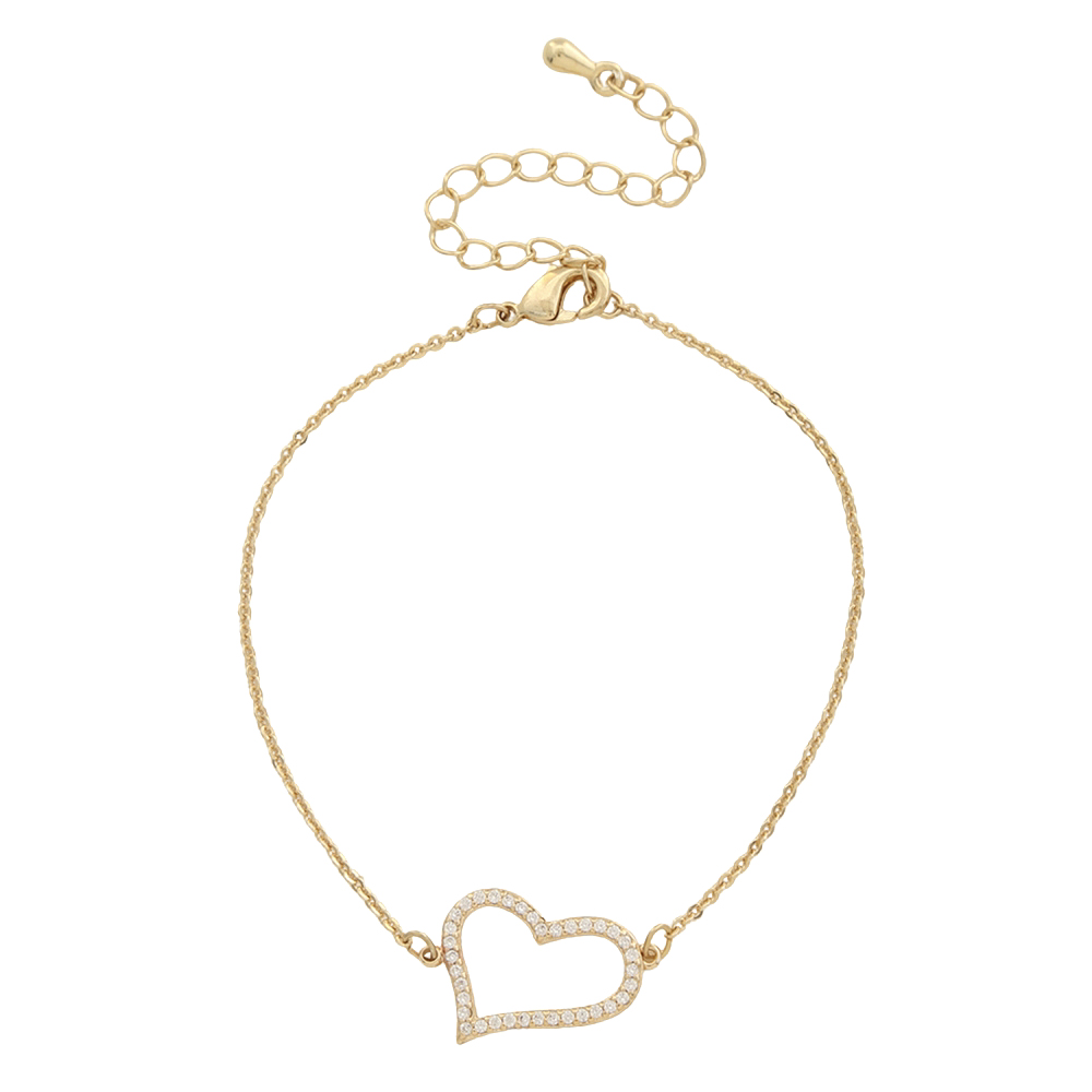SODAJO OPEN RHINESTONE HEART CHARM CHAIN LINK GOLD DIPPED BRACELET