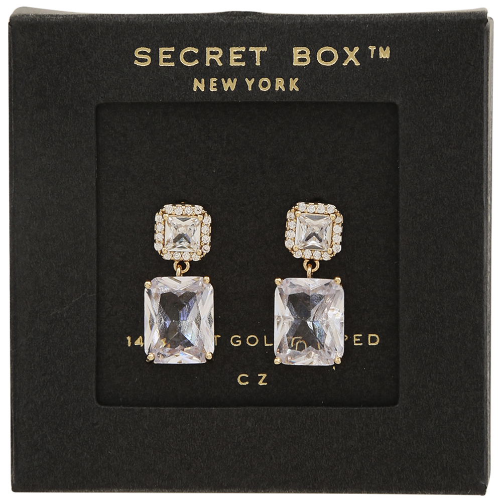 SECRET BOX GOLD DIPPED CUBIC EARRING