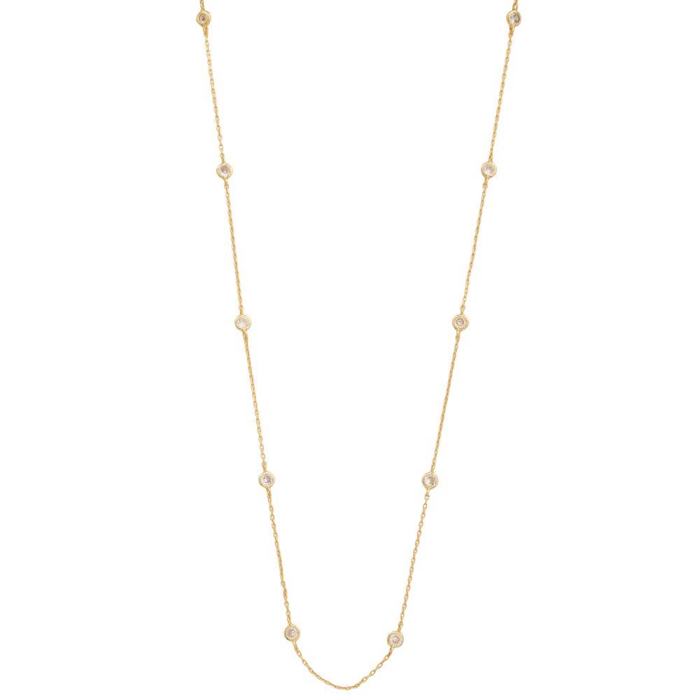 18K GOLD RHODIUM ONE SAID CZ STONE STATION NECKLACE
