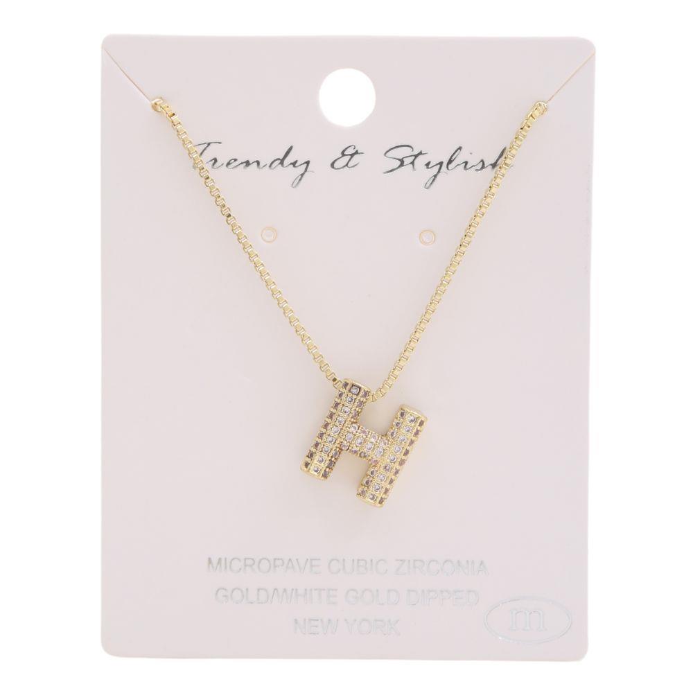 GOLD DIPPED CZ STONE INITIAL PENDANT NECKLACE