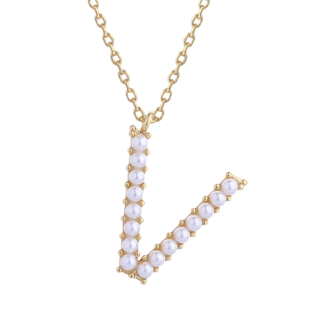 14K GOLD DIPPED PEARL INITIAL NECKLACE BRASS/ PEARL/ HYPOALLERGENIC; DIAMETER 1.5cm