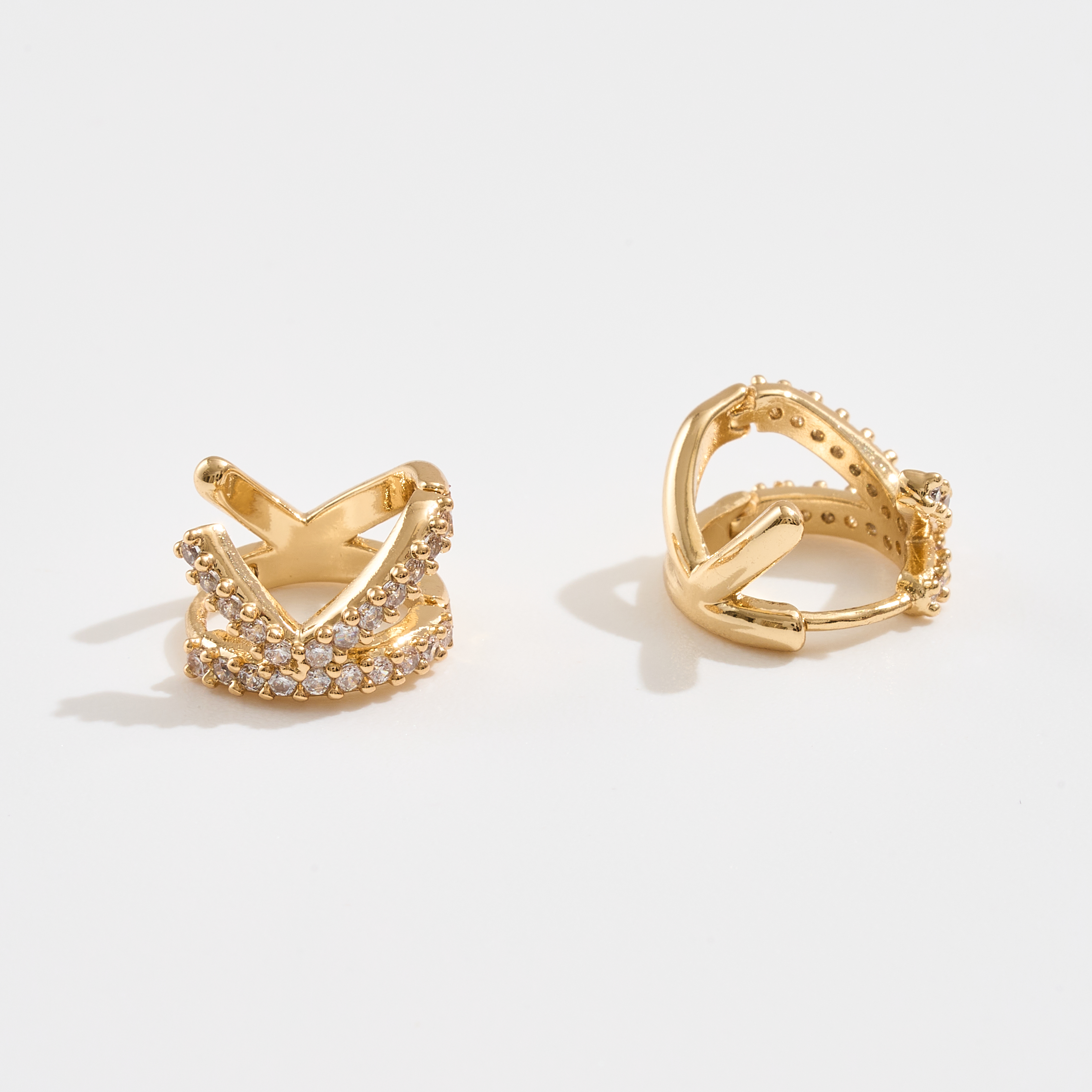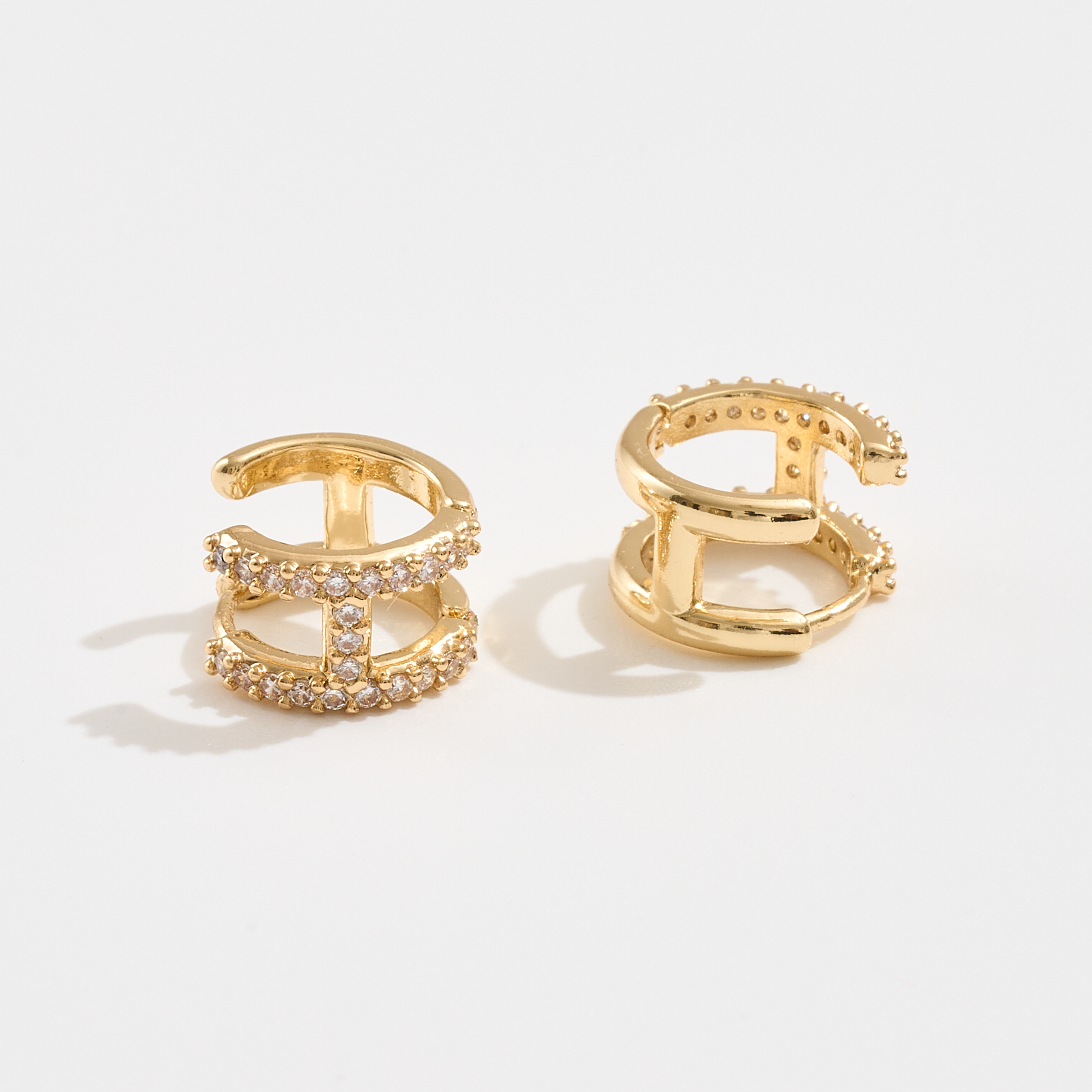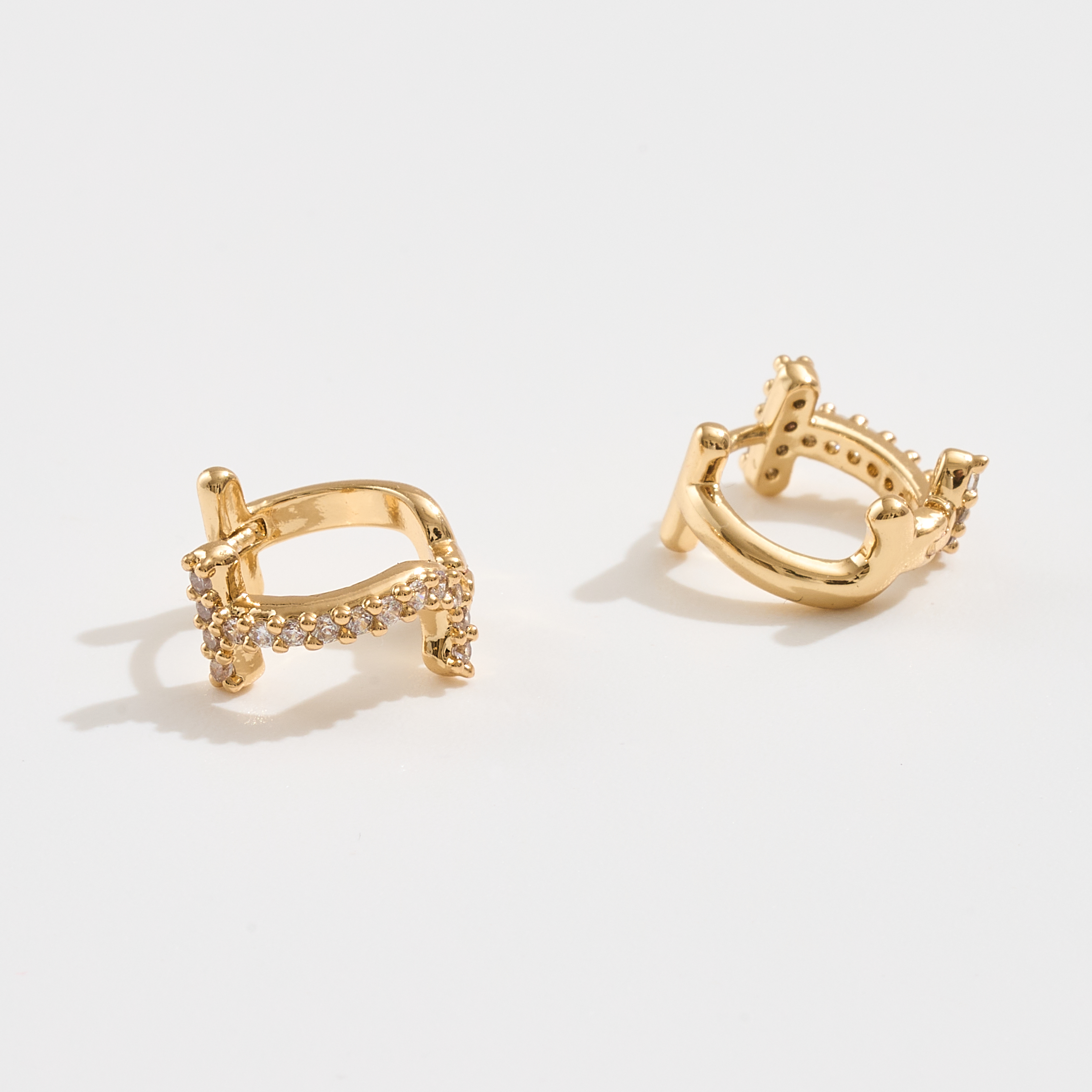 14K GOLD DIPPED INITIAL HOOP CUBIC ZIRCONIA PAVED EARRING