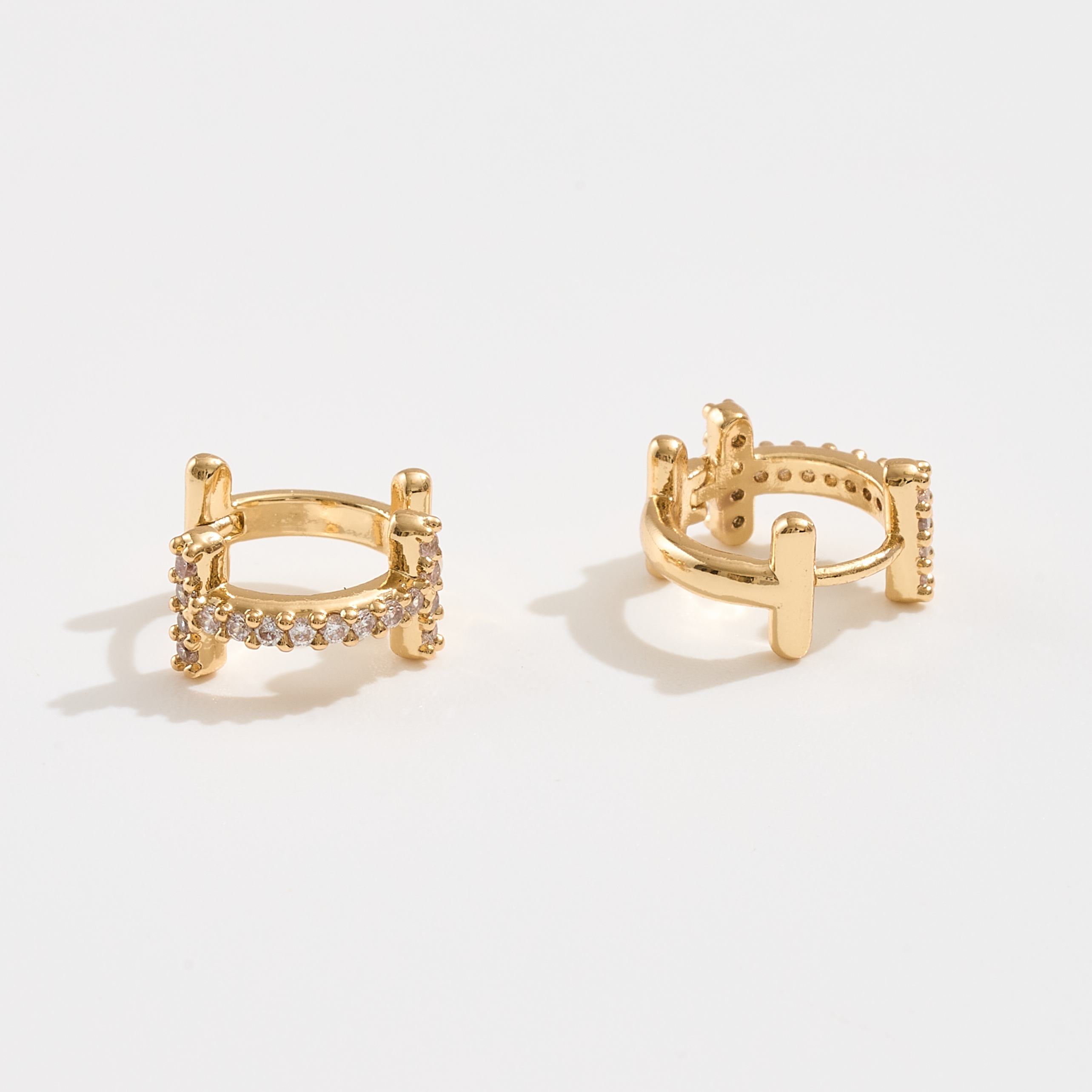 14K GOLD/WHITE GOLD DIPPED INITIAL H PAVE CZ HUGGIE EARRINGS