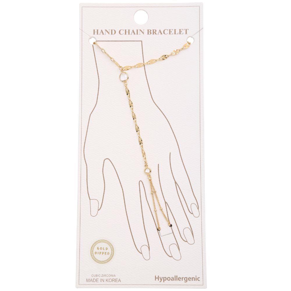 GOLD DIPPED CZ HYPOALLERGENIC HAND CHAIN BRACELET