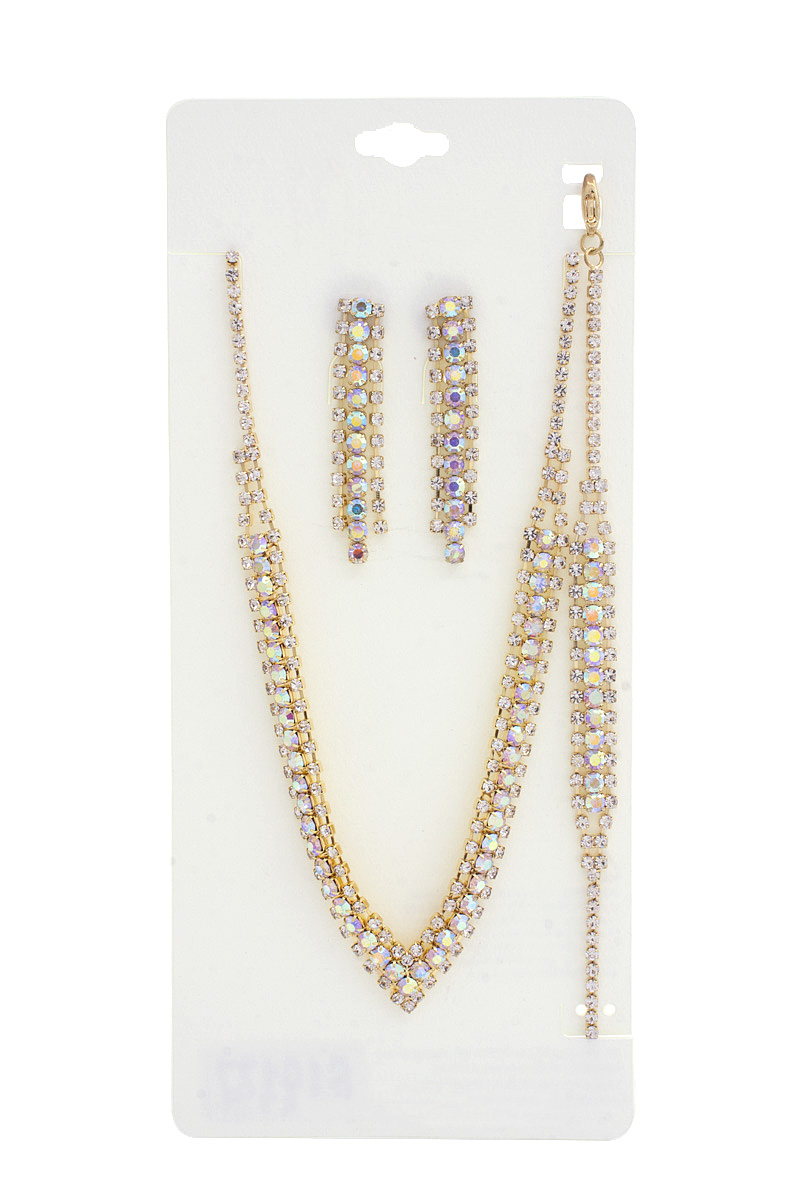 RHINESTONE V FRINGE NECKLACE EARRING BRACELET SET