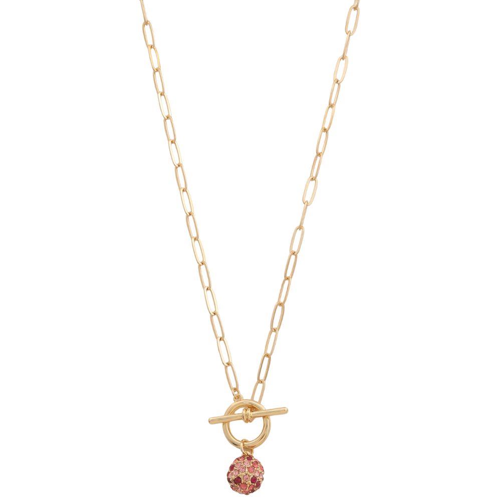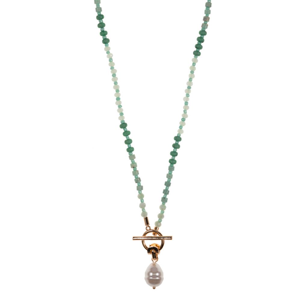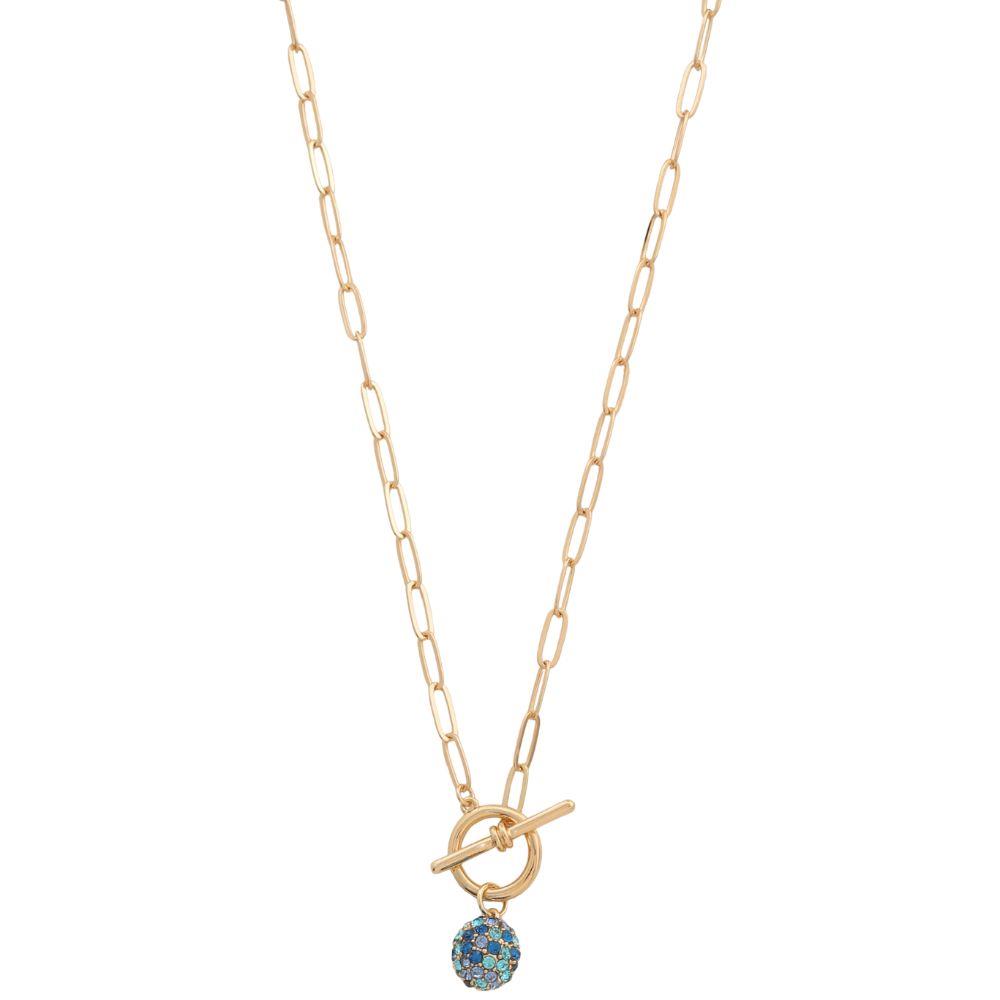 STONE BALL BEAD TOGGLE CLASP OVAL LINK NECKLACE