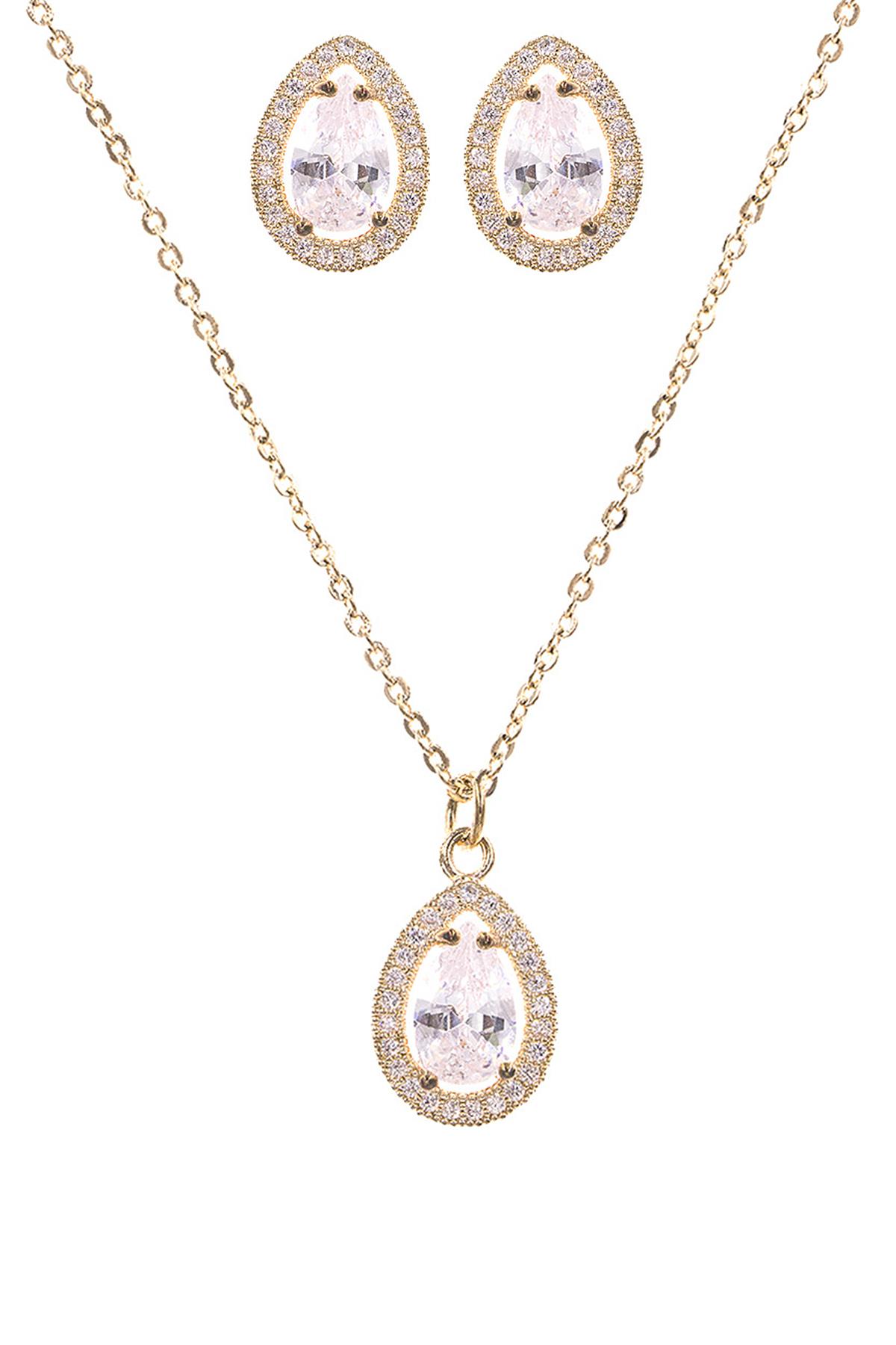 CUBIC ZIRCONIA RHINESTONE TEARDROP PENDANT NECKLACE EARRING SET