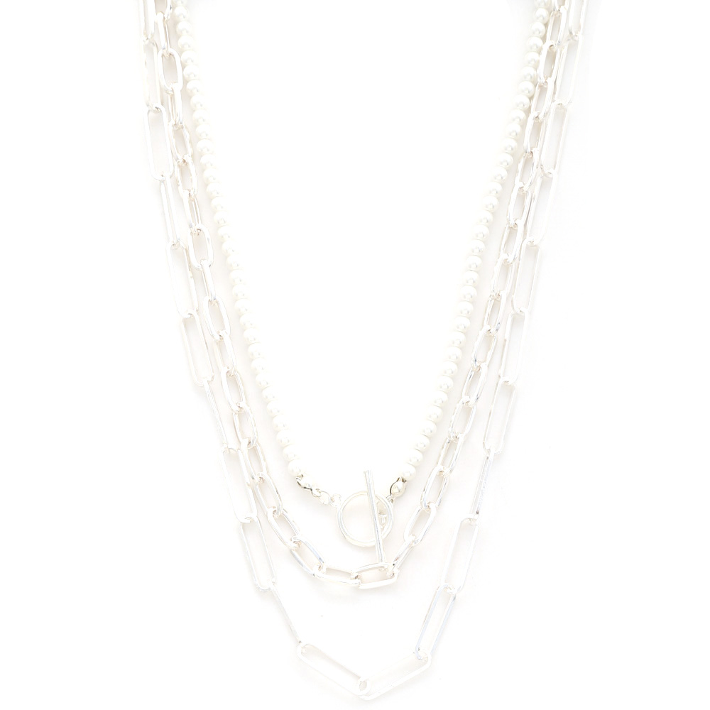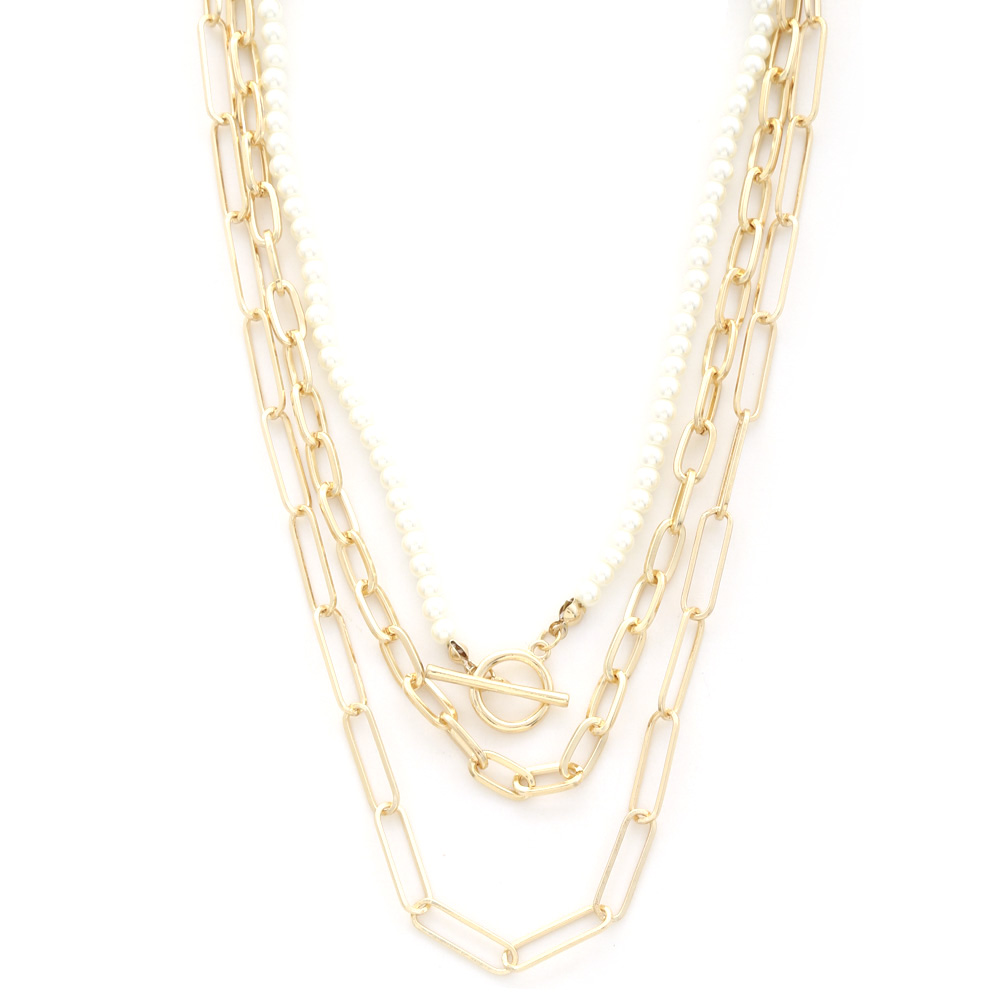 PEARL METAL BEAD CHAIN TOGGLE CLASP NECKLACE