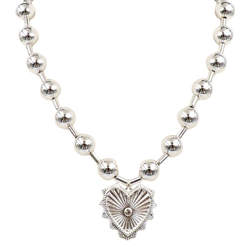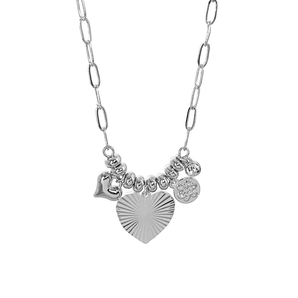 HEART CHARM MOTHER OF PEARL STATION NECKLACE