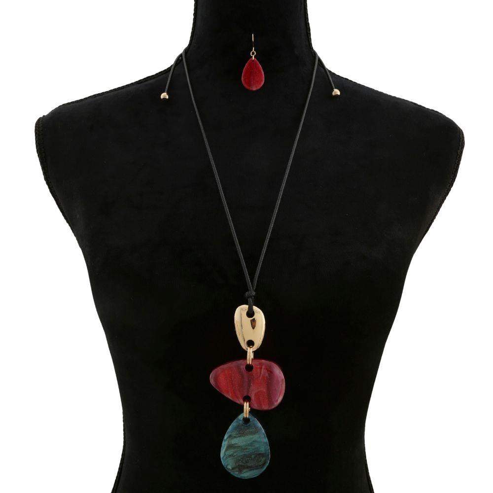 ACETATE FLAT PENDANT BEADED NECKLACE