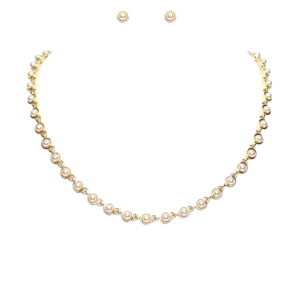 STATEMENT RHINESTONE PEARL NECKLACE EARRING SET