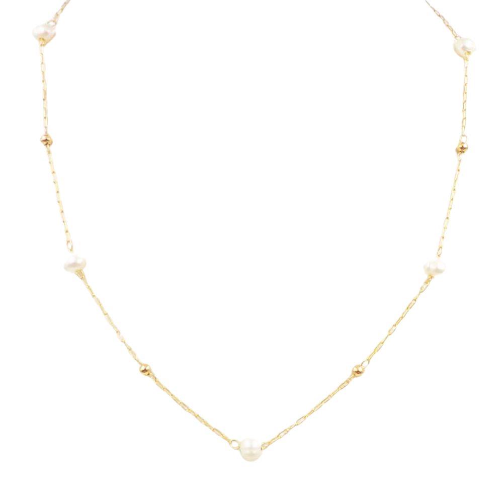 18K BRASS PEARL AND BALL STATION NECKLACE