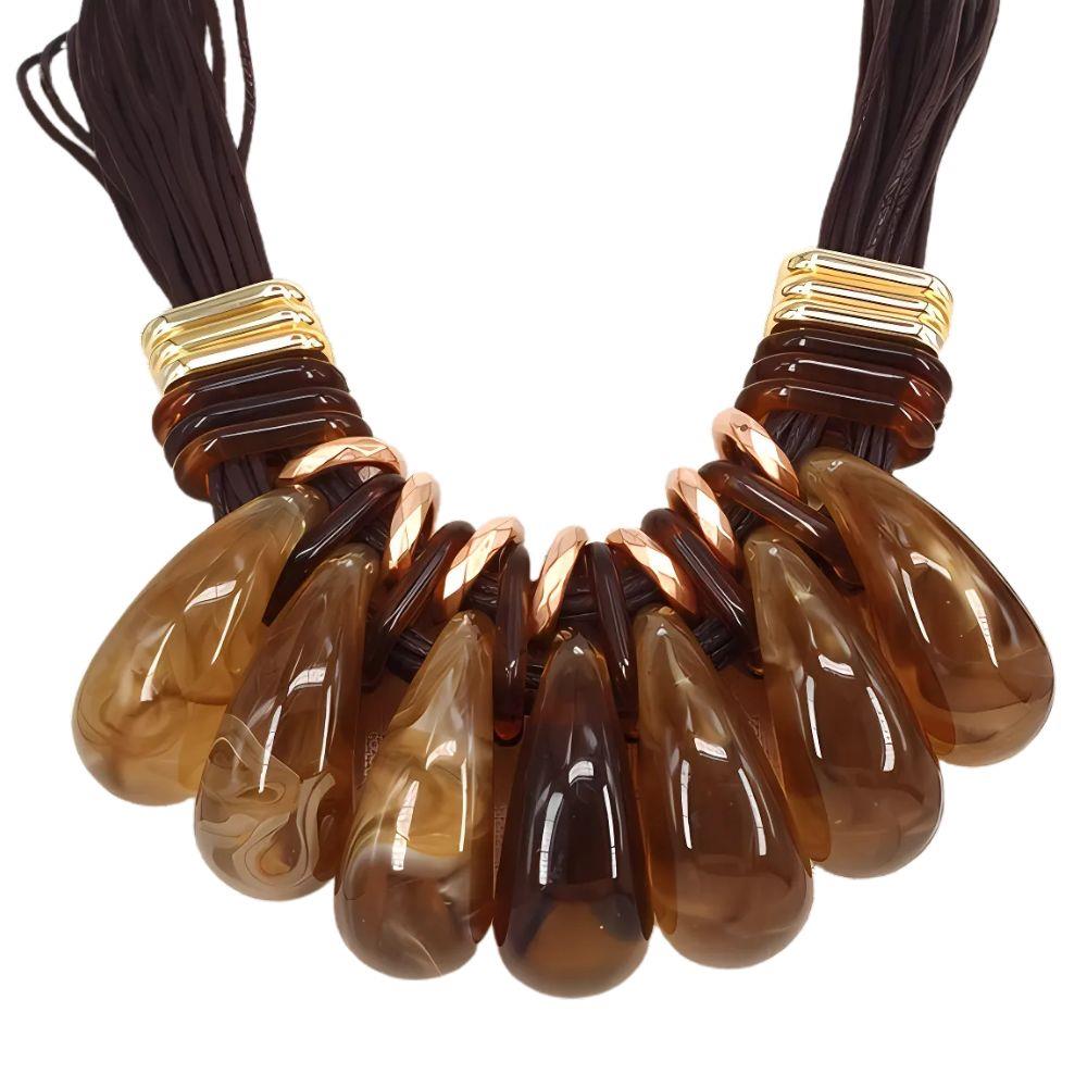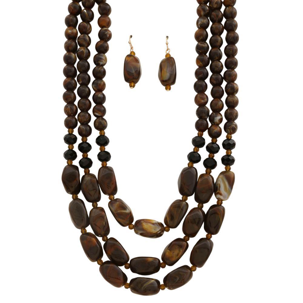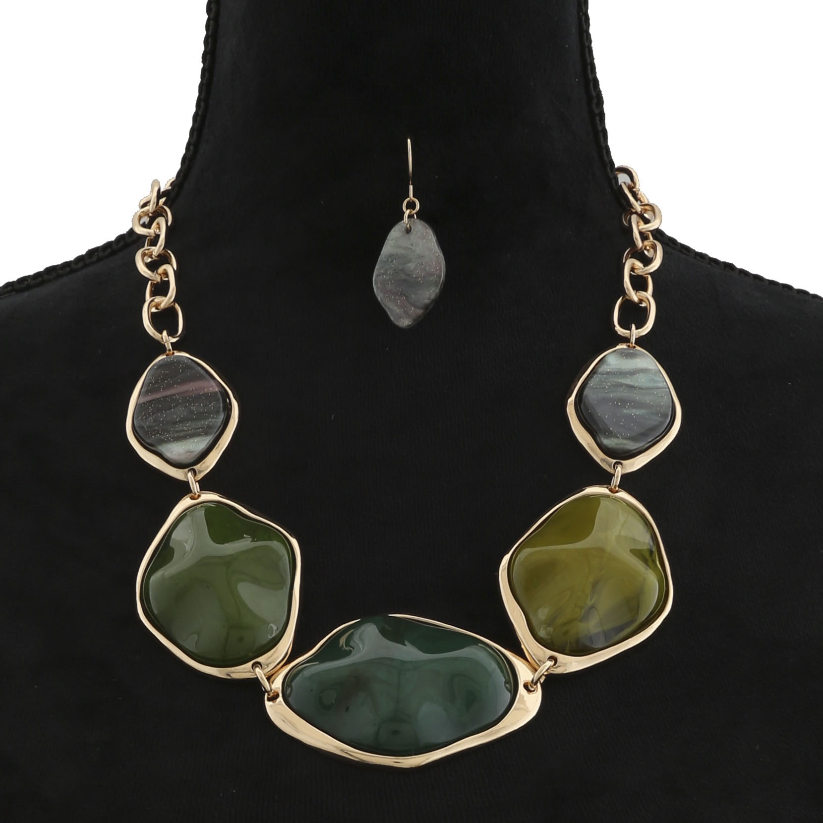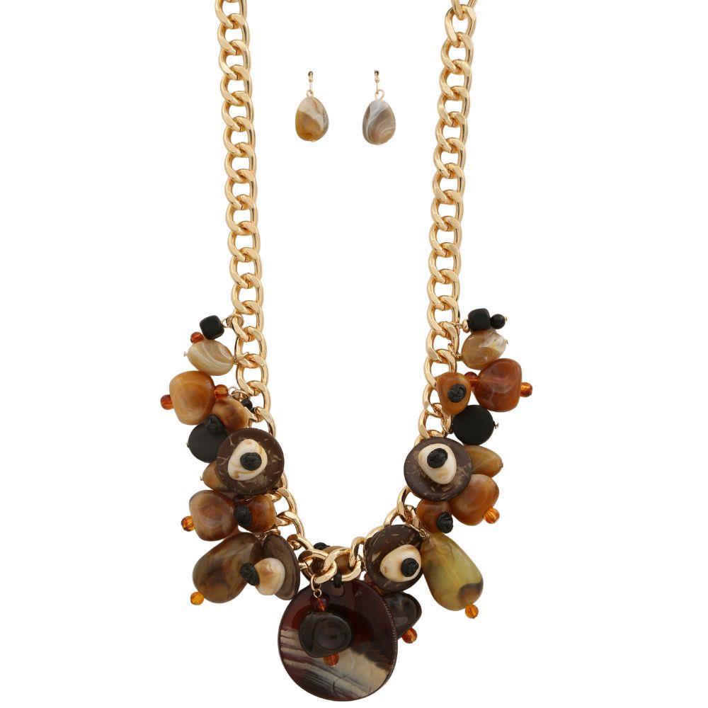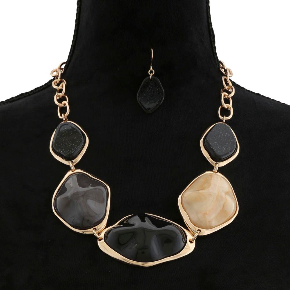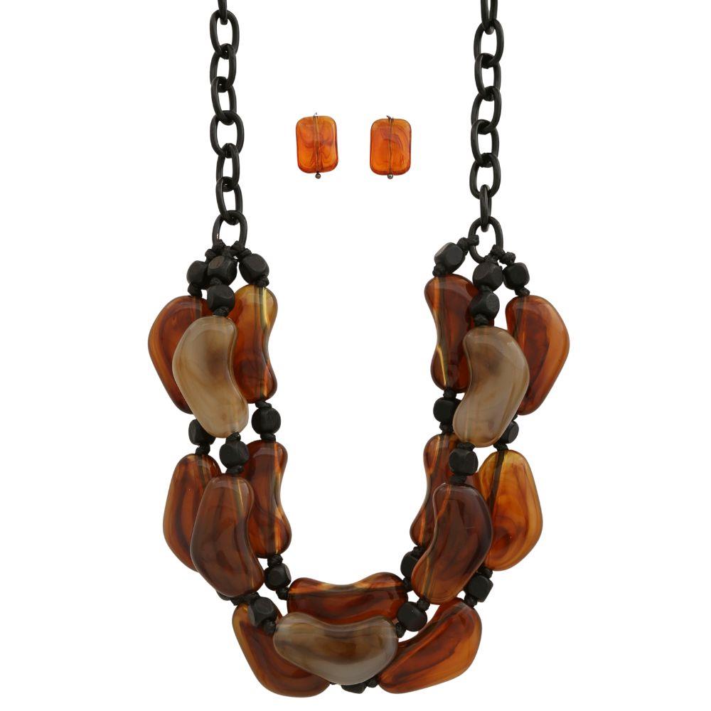 AMBER METAL MIX CHUNKY NECKLACE EARRING SET