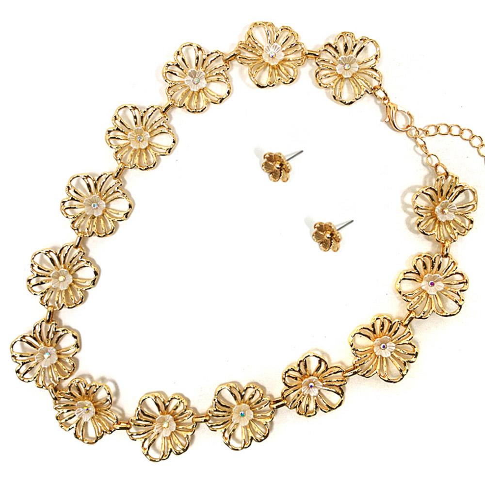 RHINESTONE FLOWER LINK STATEMENT NECKLACE EARRING SET