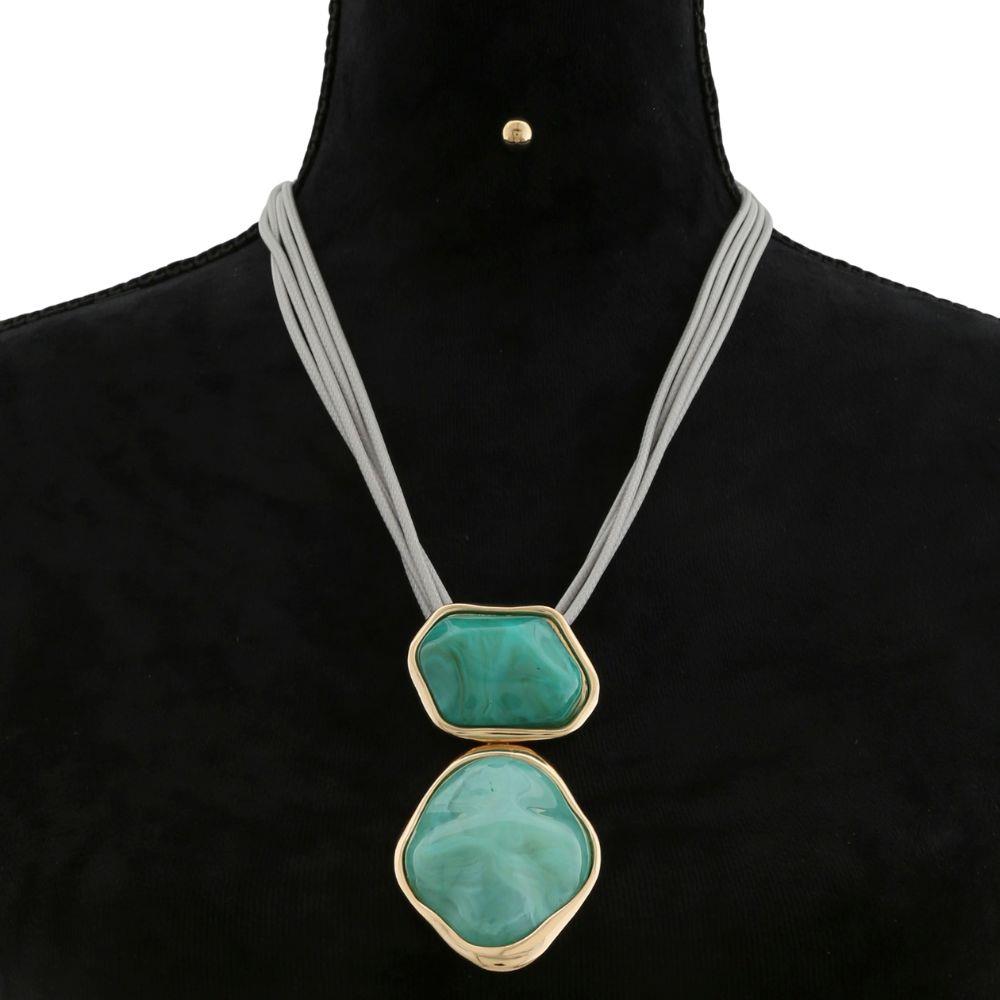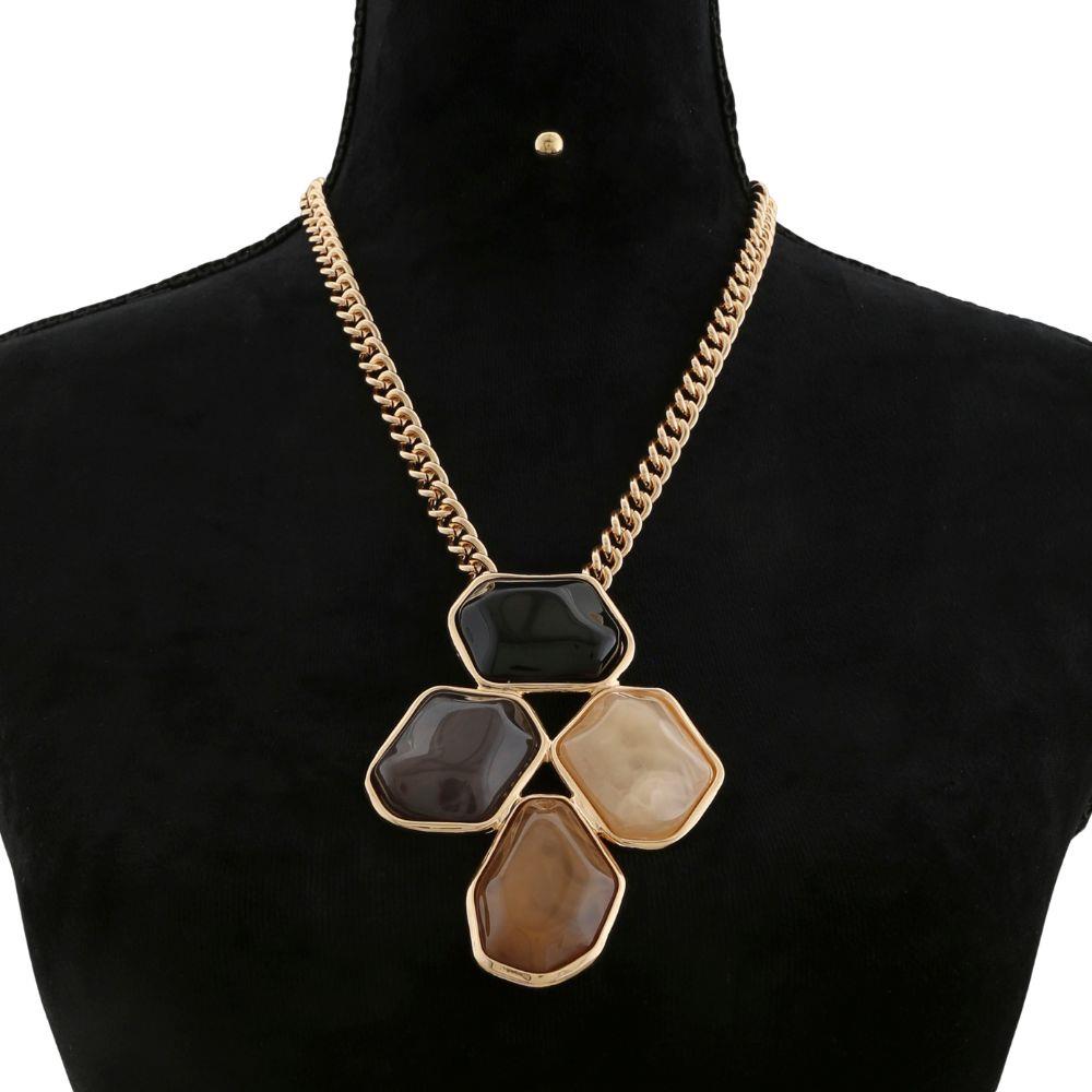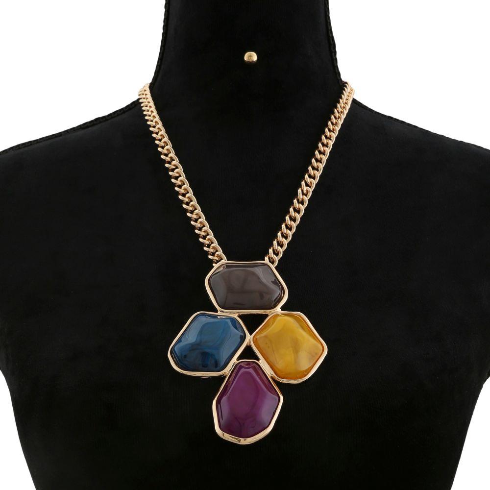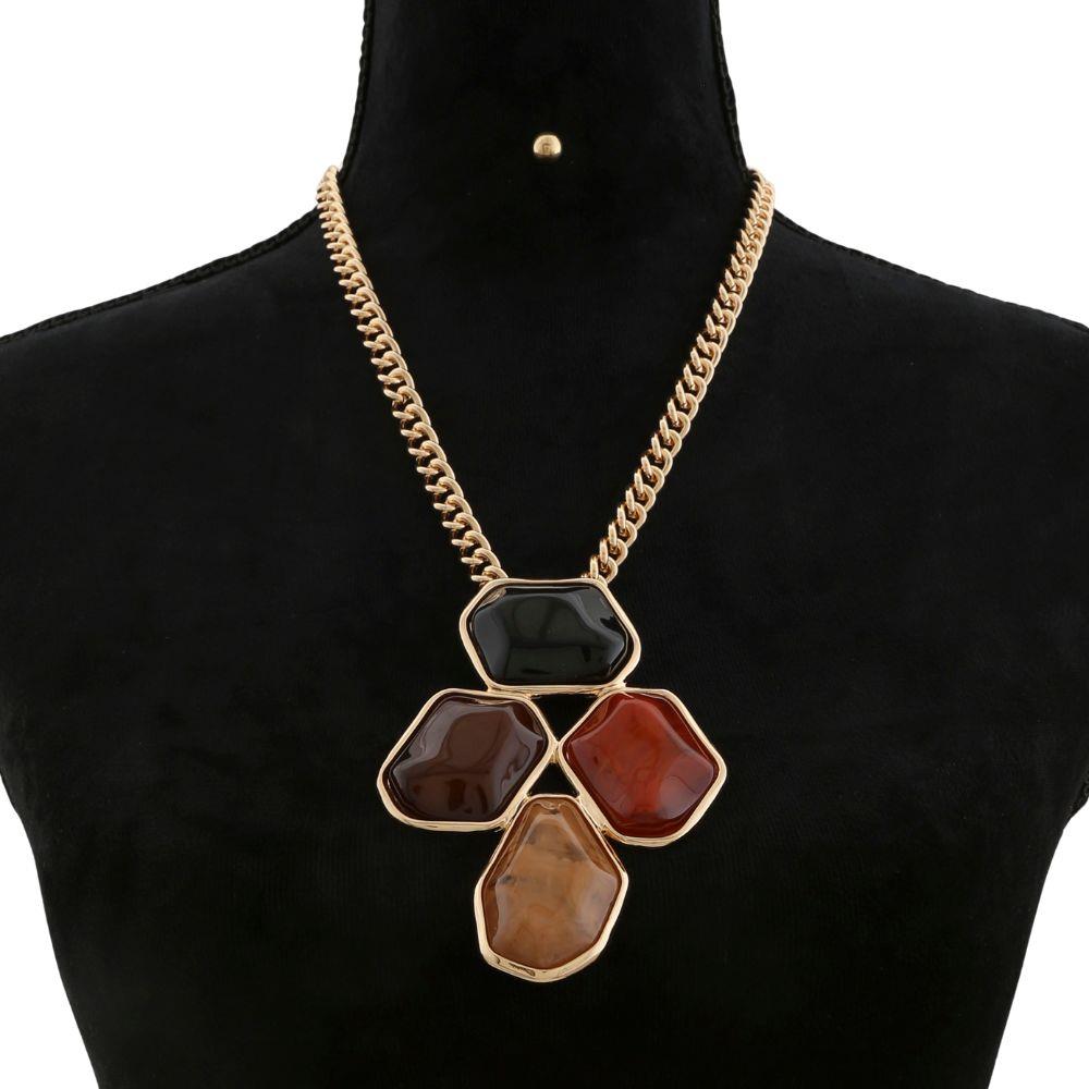 MULTI STONE GEO SHAPE PENDANT NECKLACE