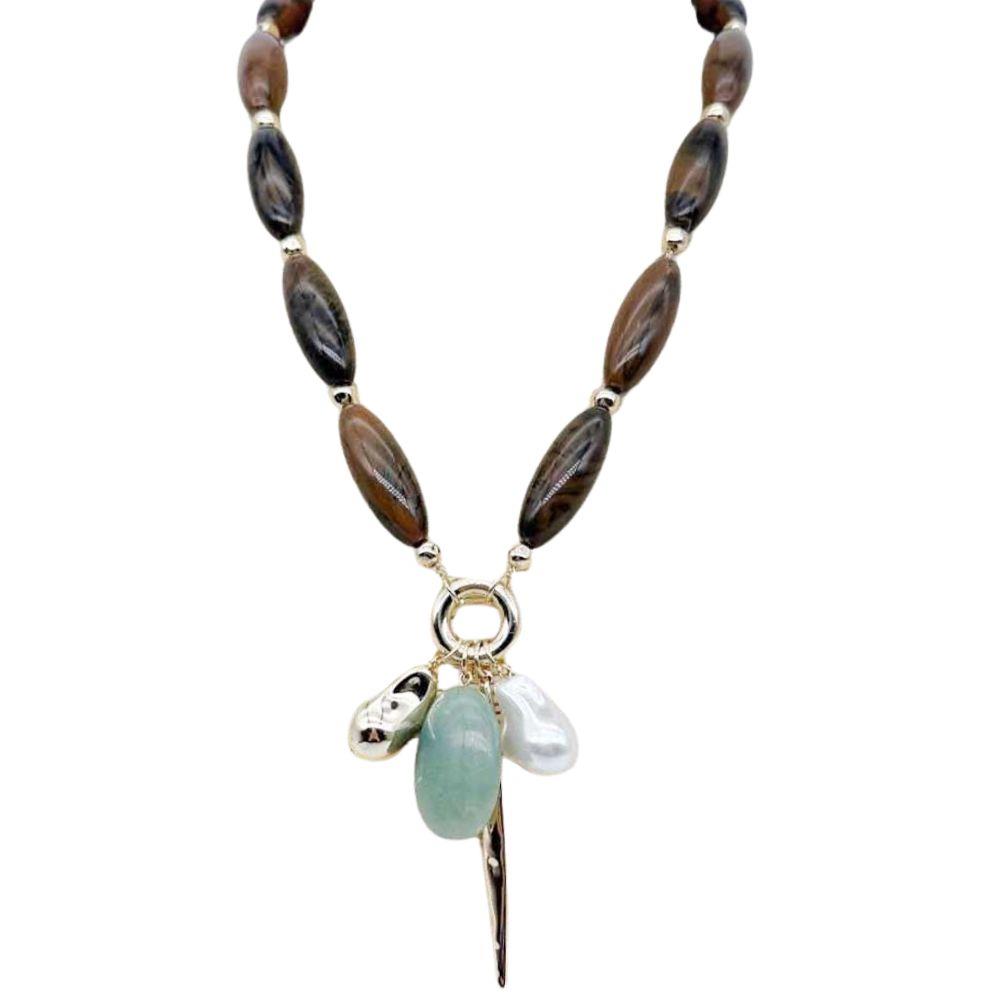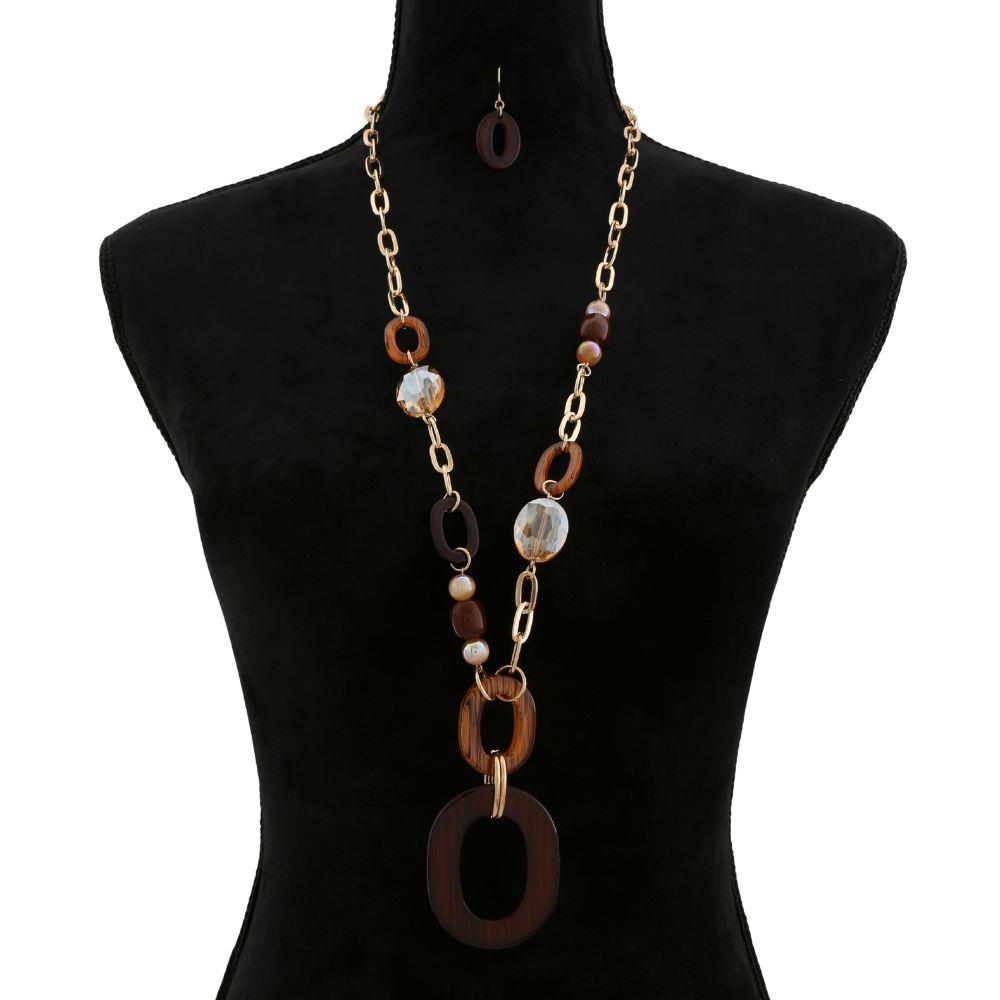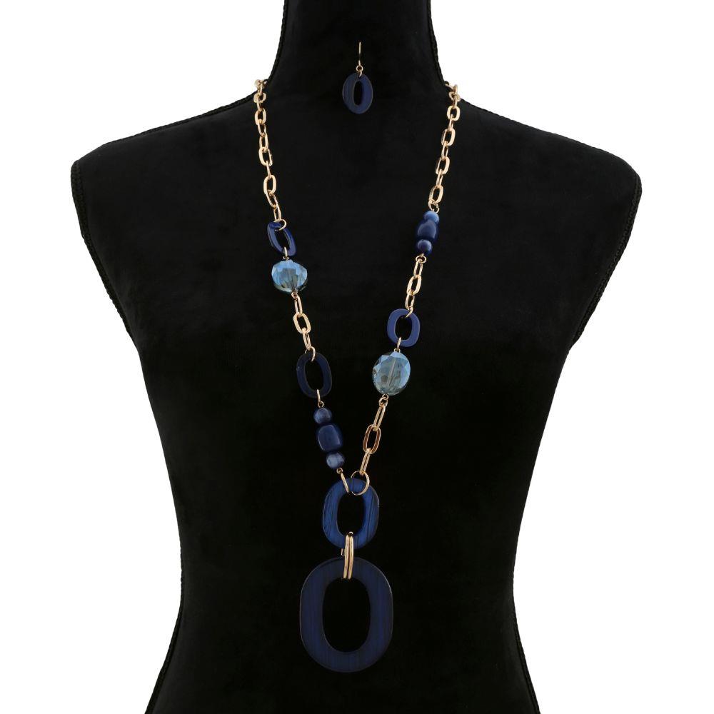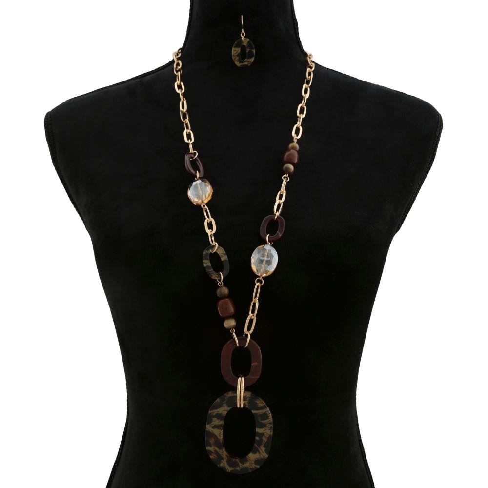 METAL CHARM RESIN LONG OVAL BEAD NECKLACE
