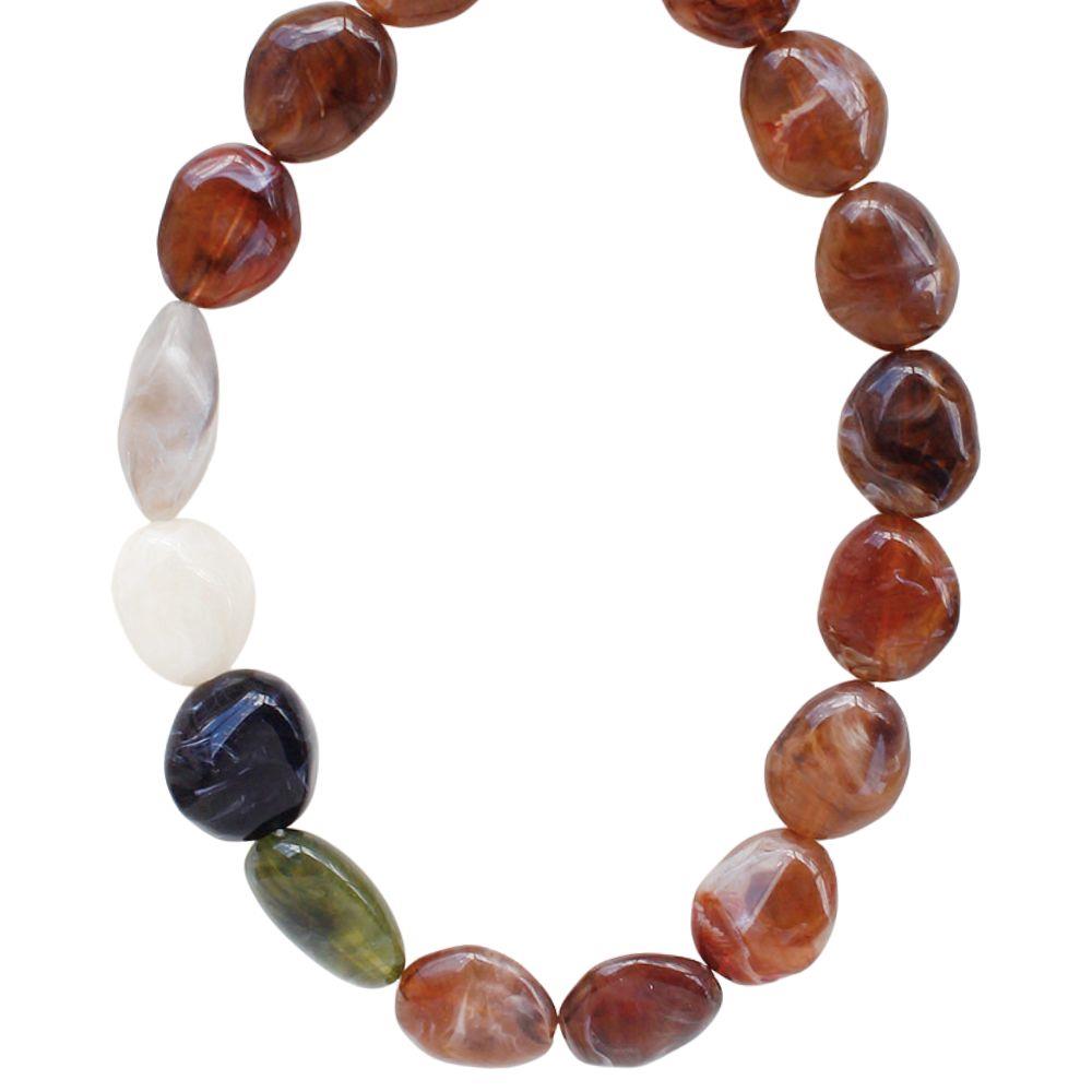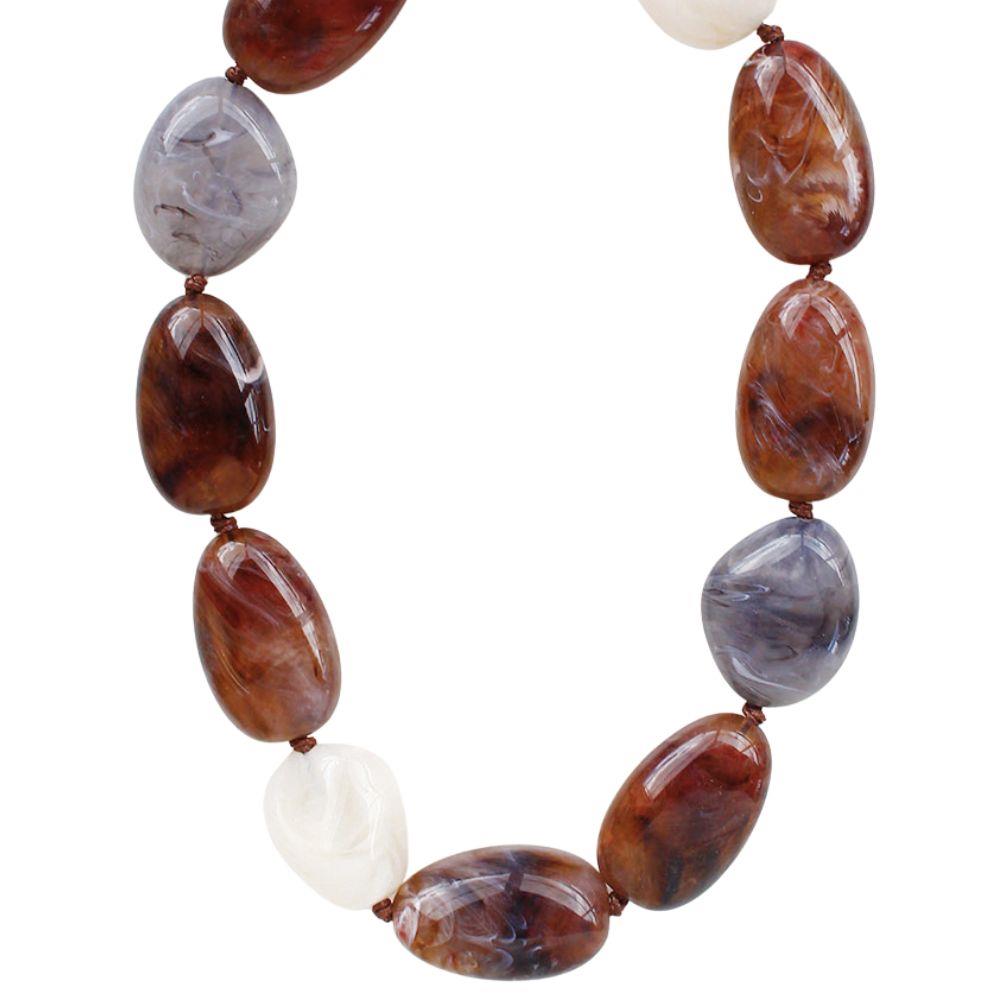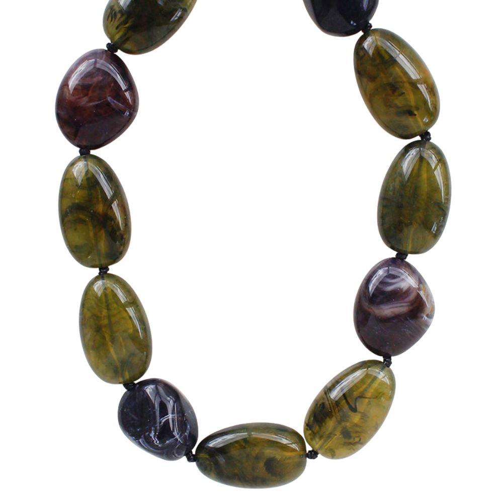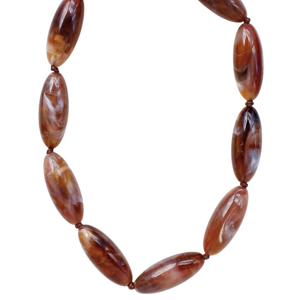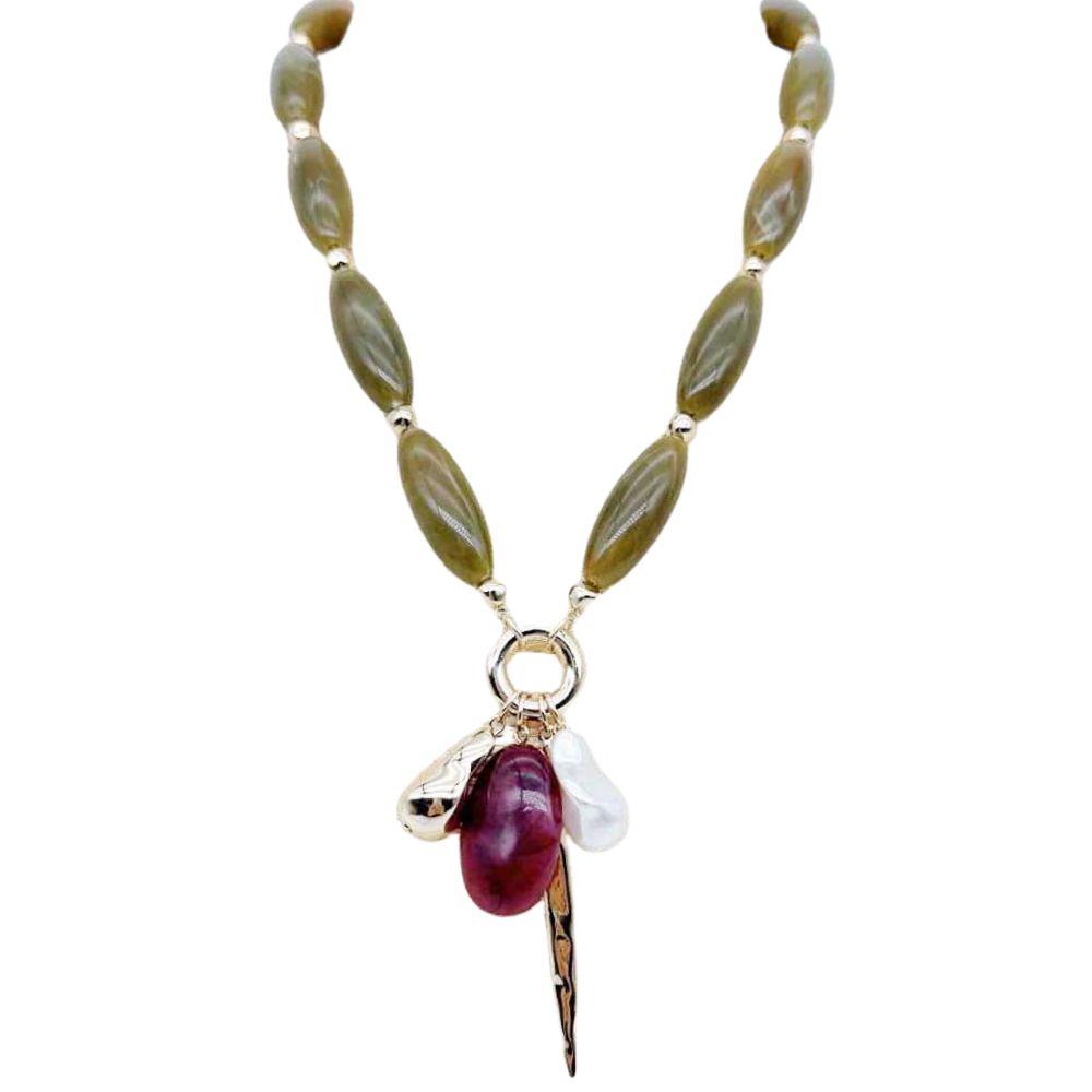 METAL CHARM RESIN LONG OVAL BEAD NECKLACE