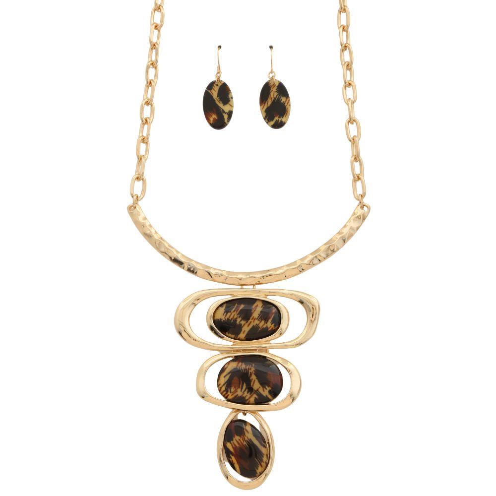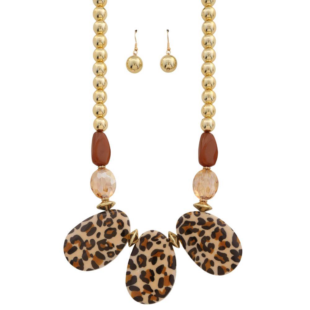 OVAL ANIMAL PRINT PATTERN BEADED NECKLACE