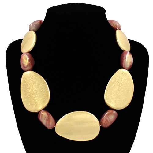 FLAT METAL BEAD ACETATE BEADED NECKLACE