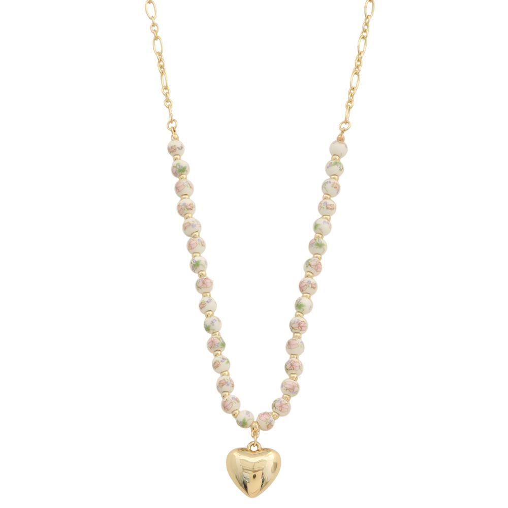 PUFFY HEART PENDANT CERAMIC BEAD NECKLACE
