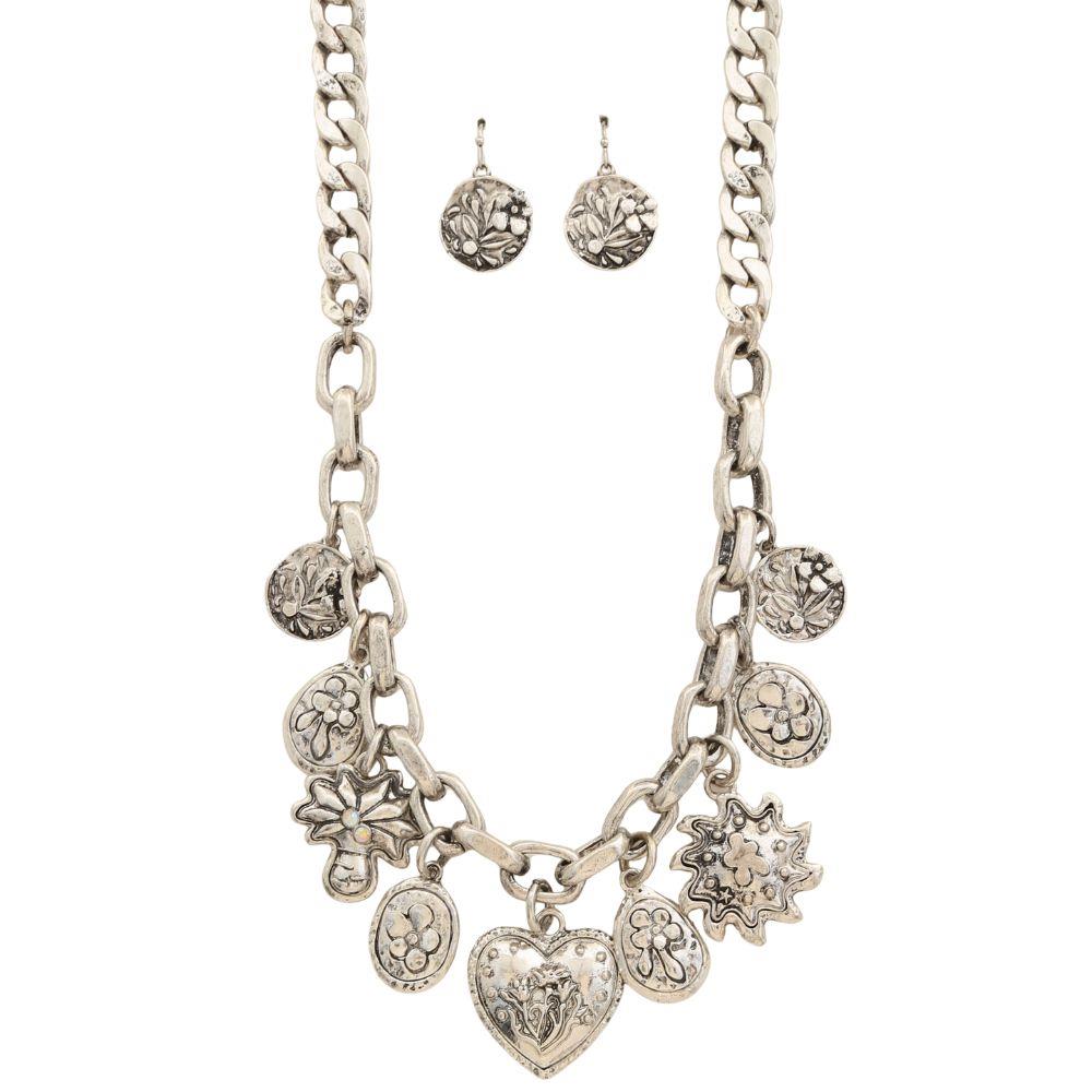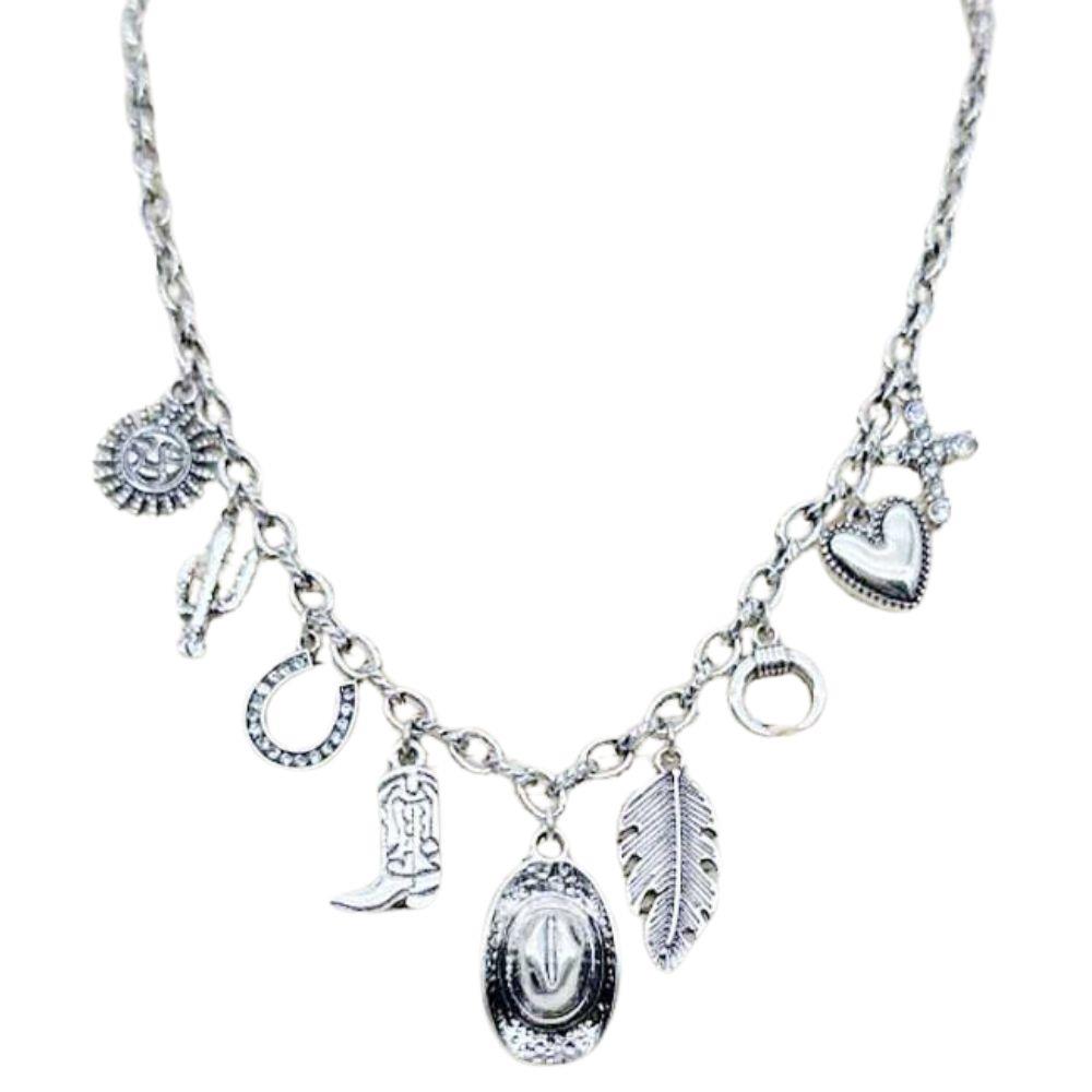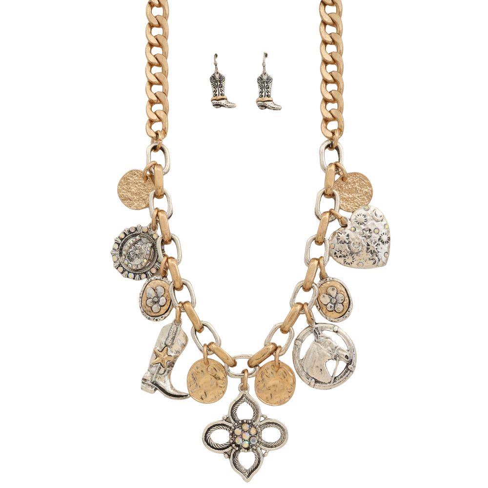 WESTERN TWO TONE MULTI CHARM LAYERED NECKLACE