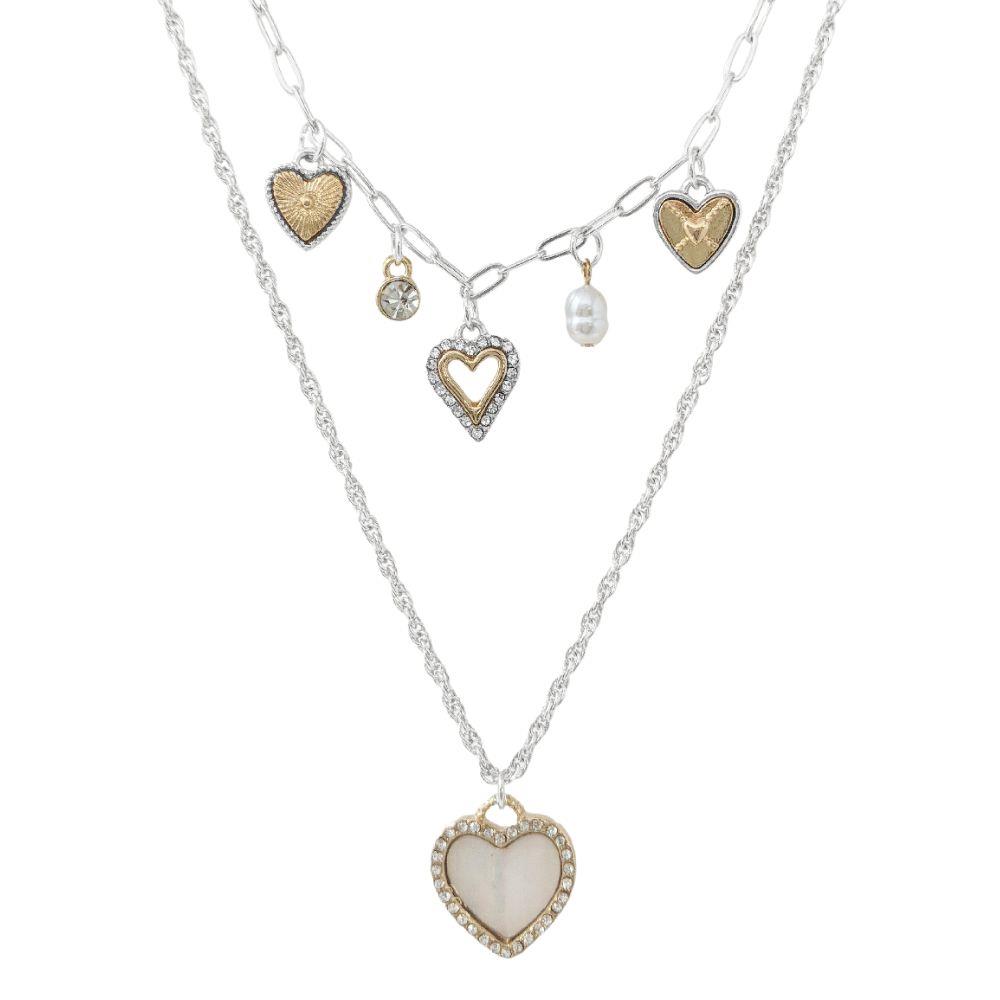 METAL MIXED BEAD HEART PENDANT NECKLACE