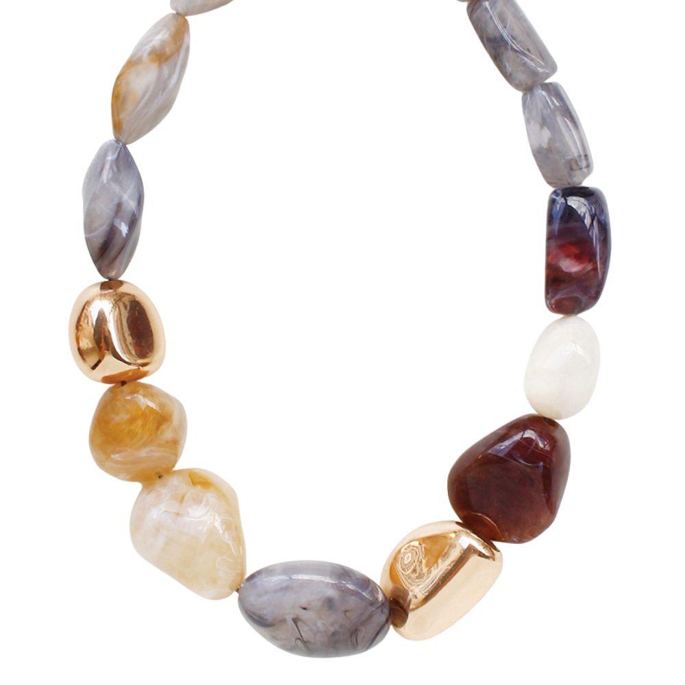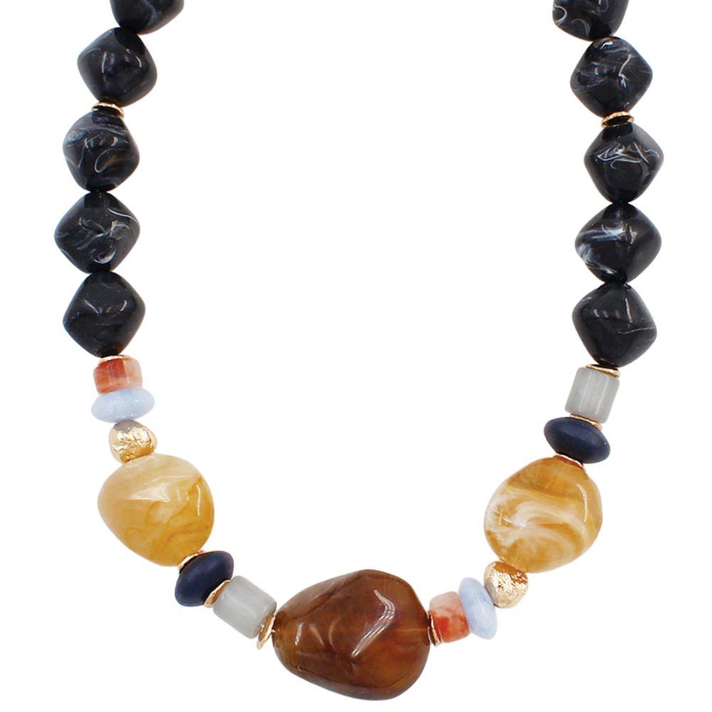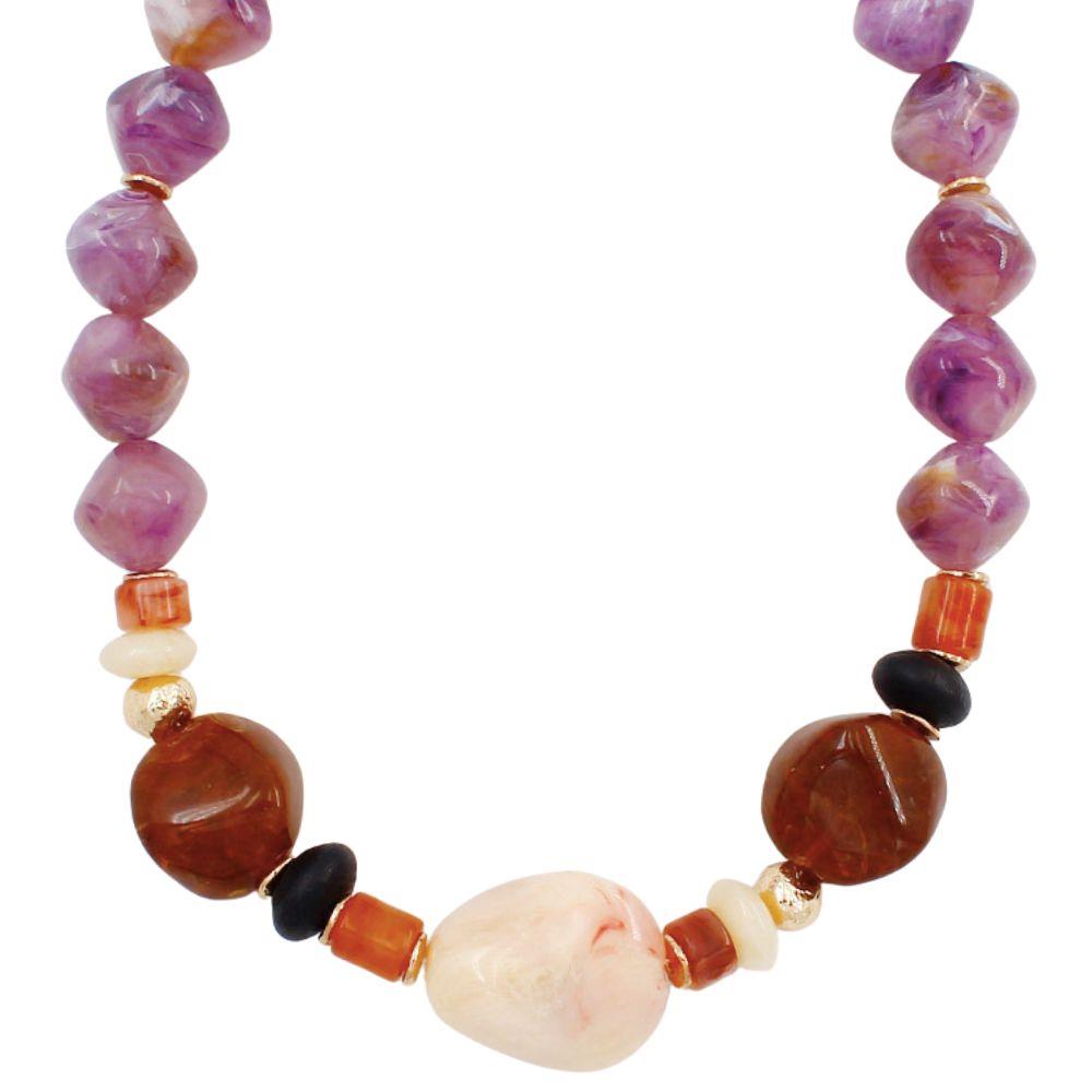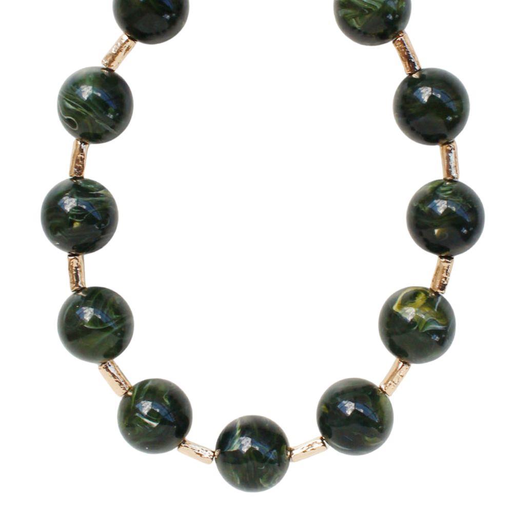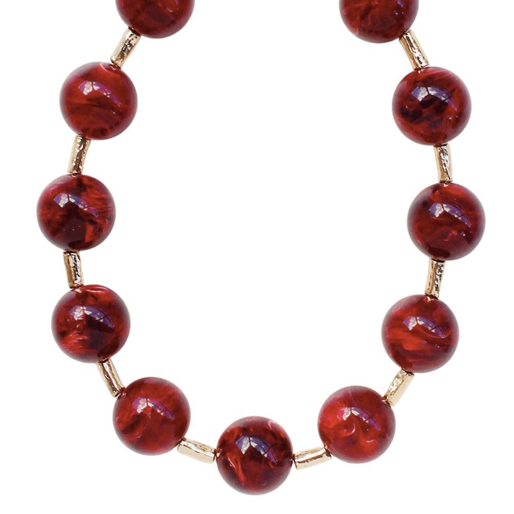 ACRYLIC BEAD METAL ACCENT ROUND NECKLACE
