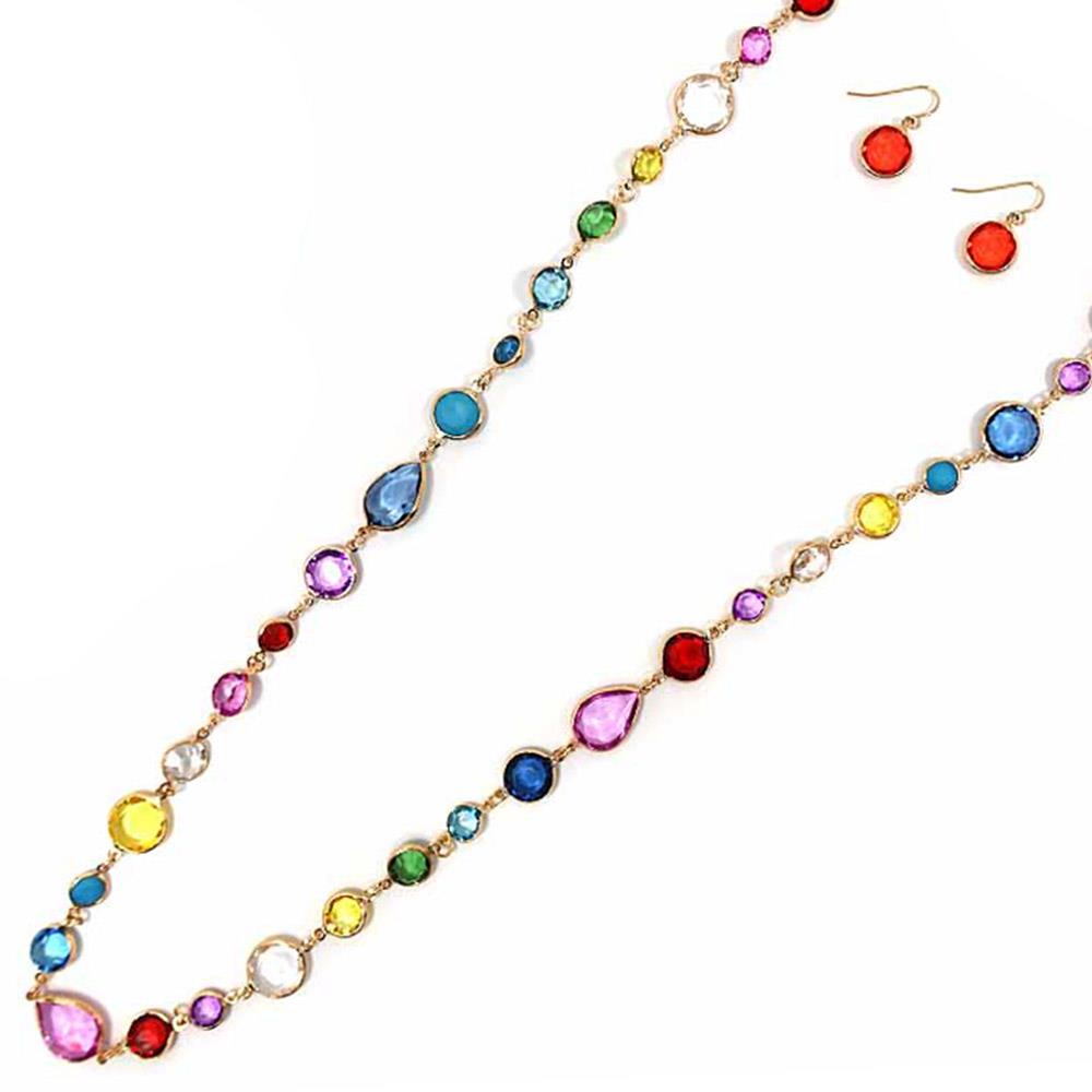 MULTI STRAND STONE DROP STATEMENT NECKLACE EARRING SET