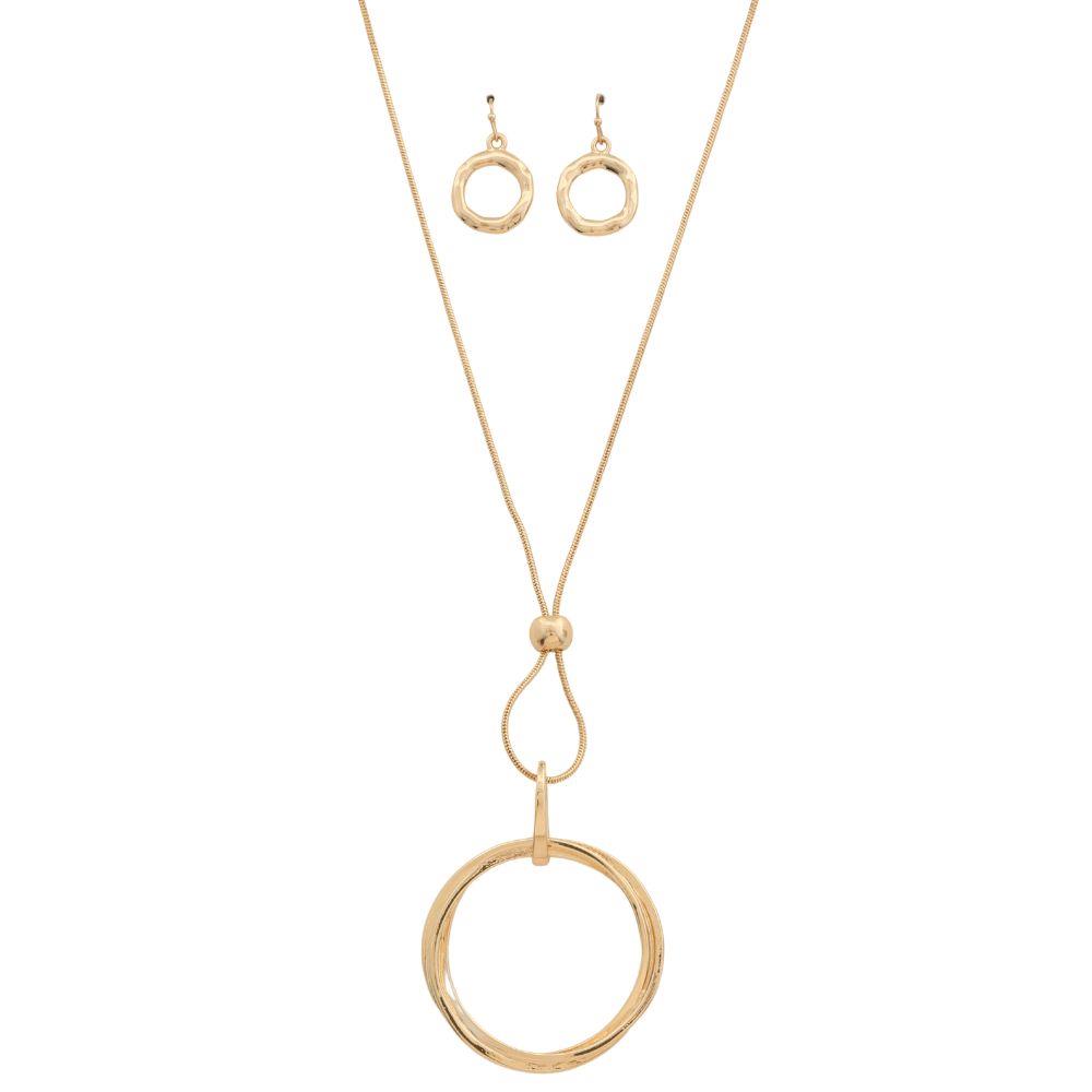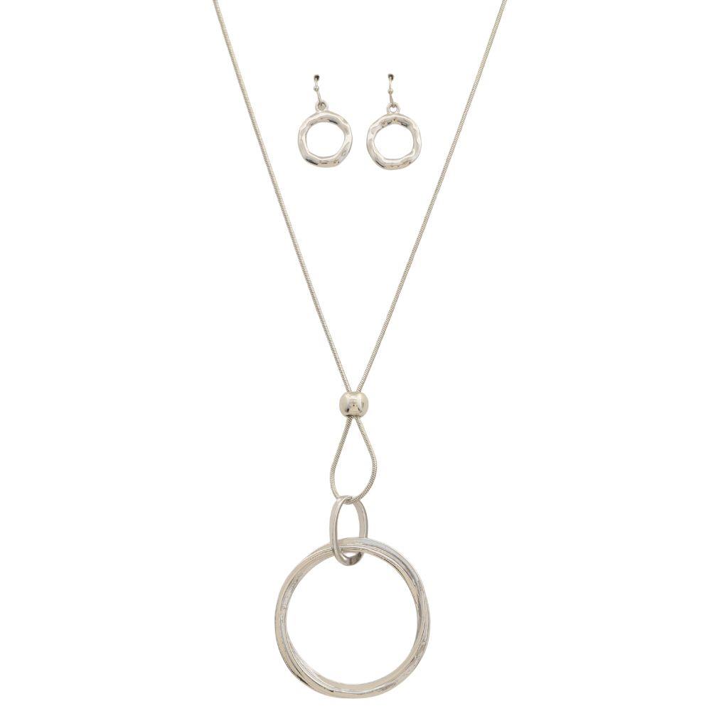 TEXTURED METAL ROUND DISC NECKLACE EARRING SET