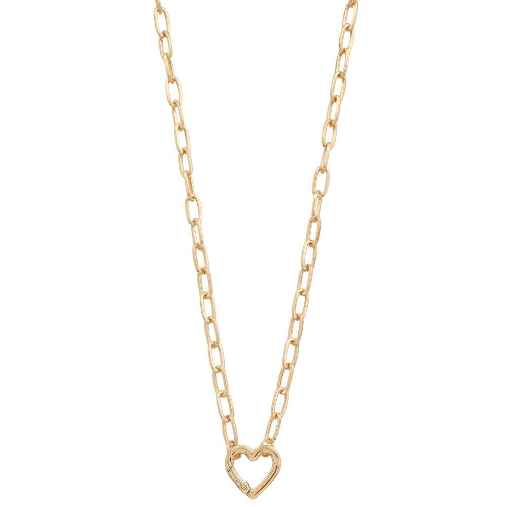 HEART LOCK CHARM OVAL LINK METAL NECKLACE