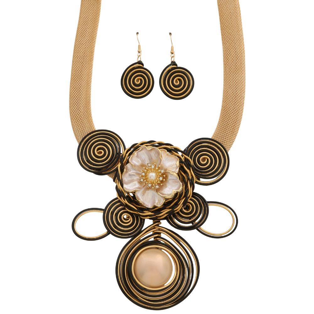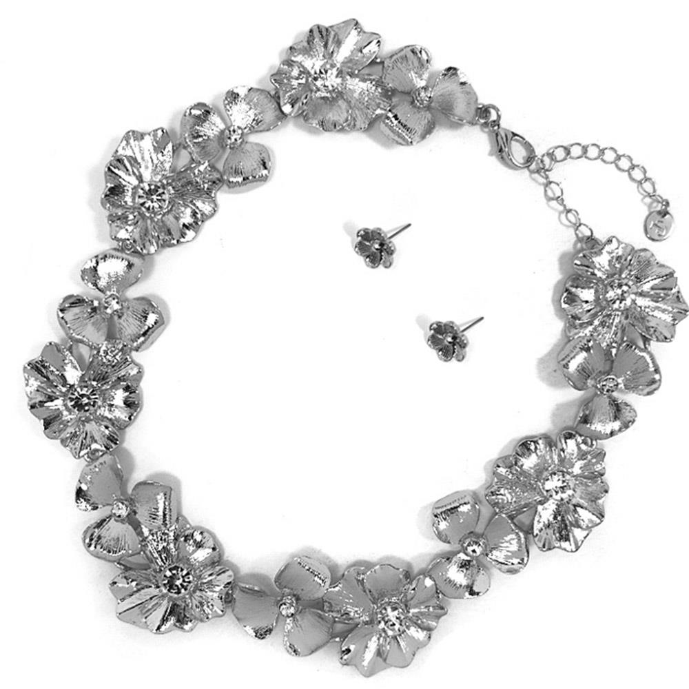 TEXTURED METAL FLORAL STATEMENT NECKLACE EARRING SET