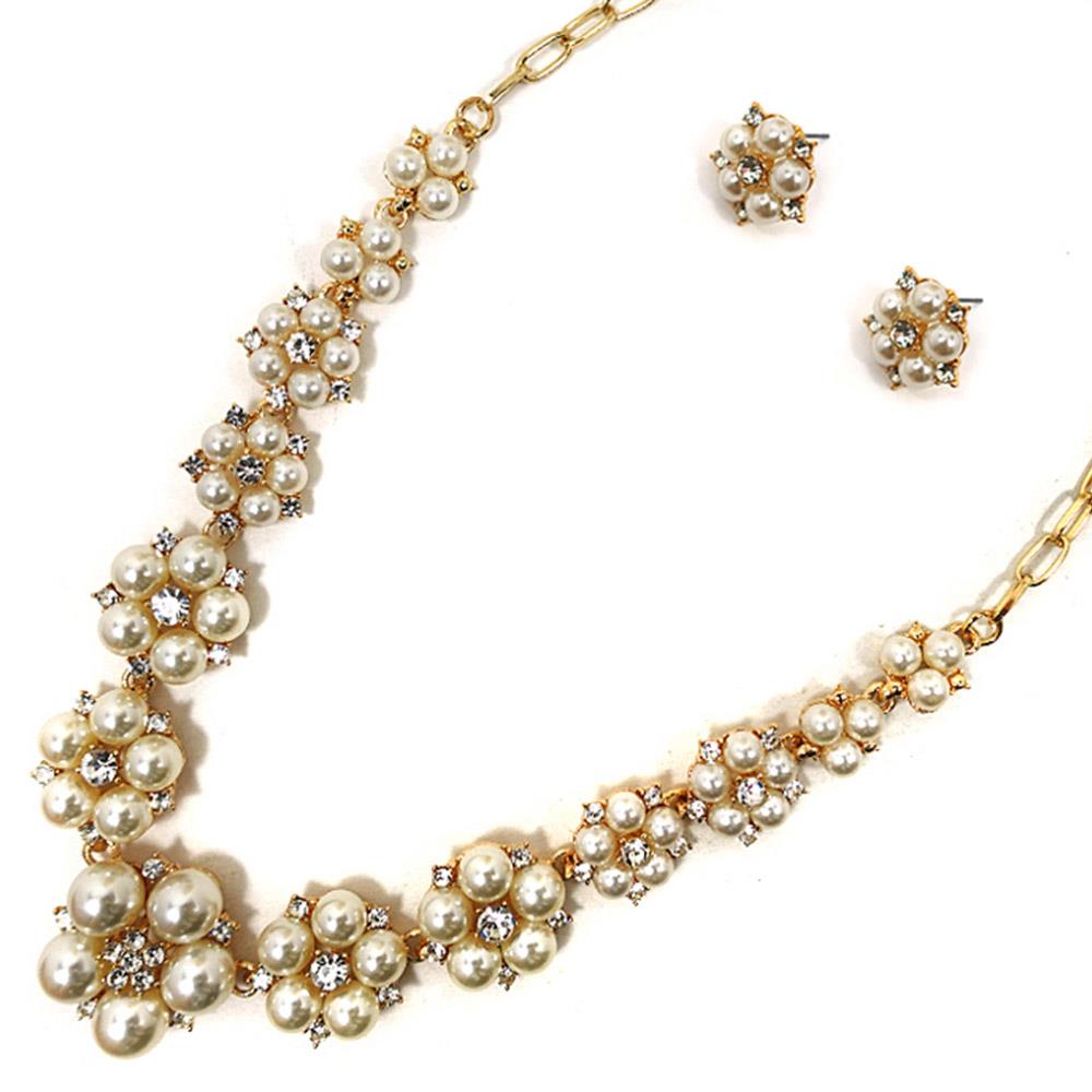 PEARL FLORAL STATEMENT NECKLACE EARRING SET