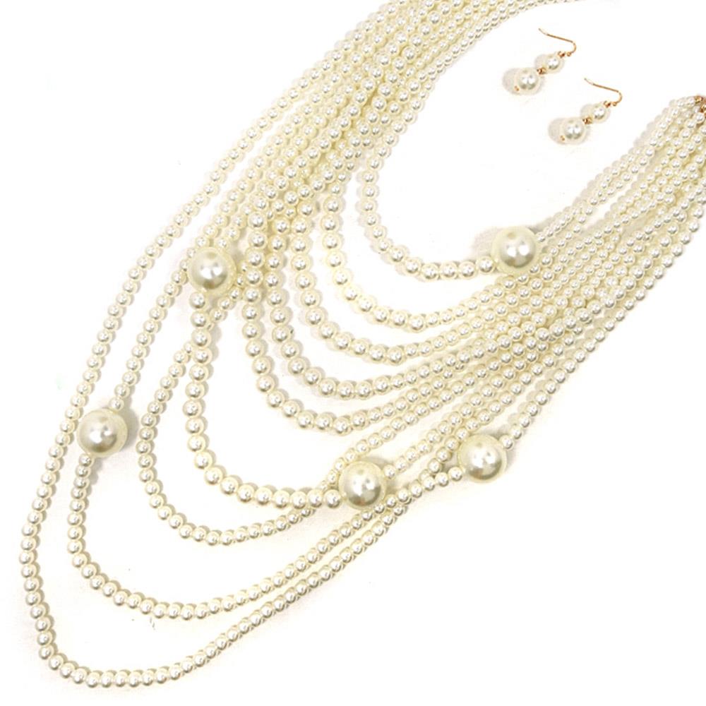 PEARL MULTI STRAND STATEMENT NECKLACE EARRING SET