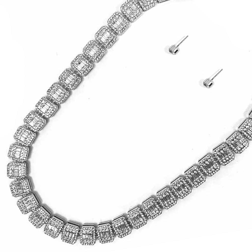 RHINESTONE SQUARE LINK STATEMENT NECKLACE EARRING SET